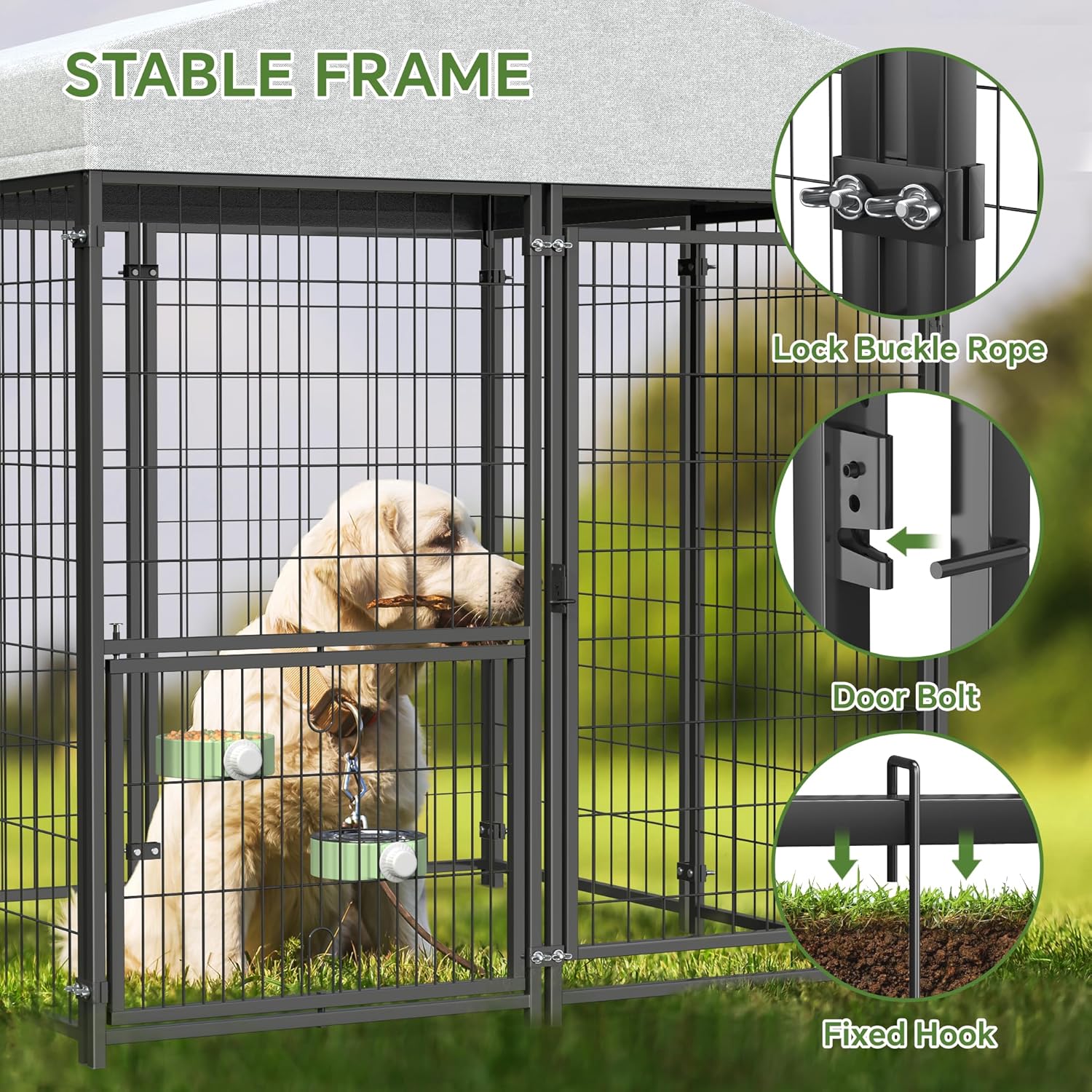 Ganchos seguros para mayor estabilidad: la perrera para exteriores está equipada con ganchos fuertes para una colocación segura y estable, asegurando la seguridad de tu mascota.