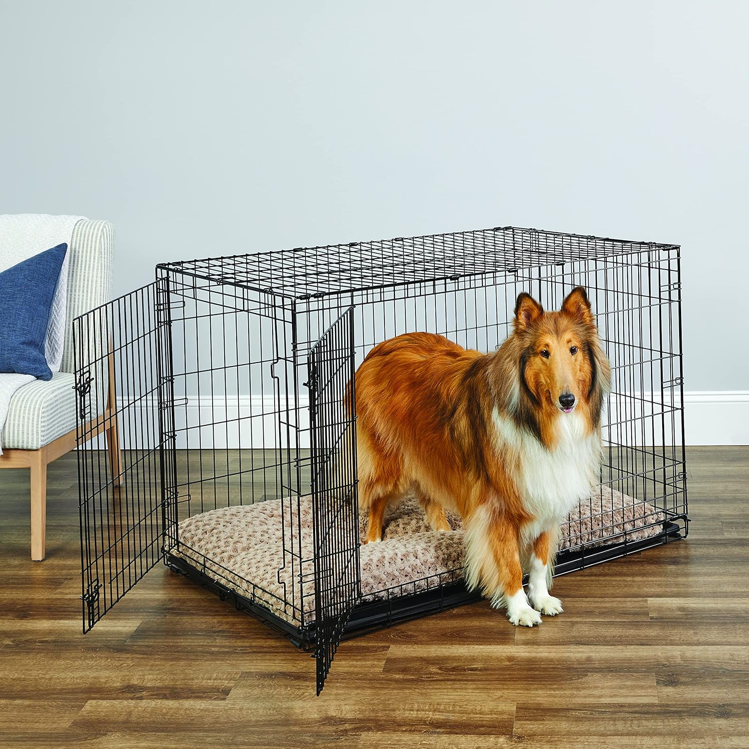 Construcción duradera y fuerte, de calidad que crea un lugar seguro para que tu perro cumpla con su instinto natural de guarida. La ventilación adecuada, las grandes aberturas de puerta con umbrales bajos y los clips de esquina redondeados hacen de New World una experiencia de jaula más segura para tu perro