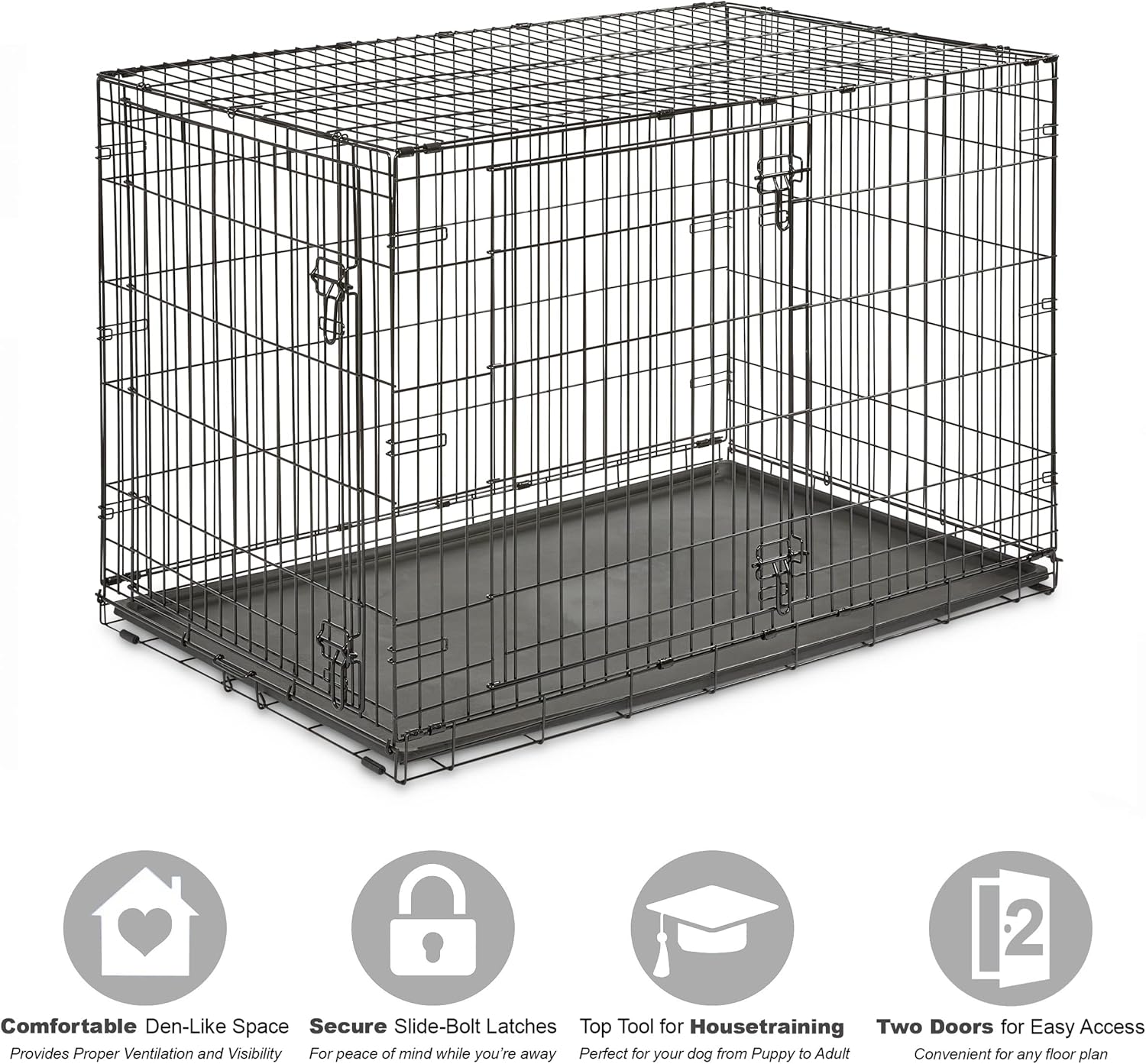 Jaula de Metal Plegable para Perros y Gatos – Doble Entrada y Bandeja Extraíble