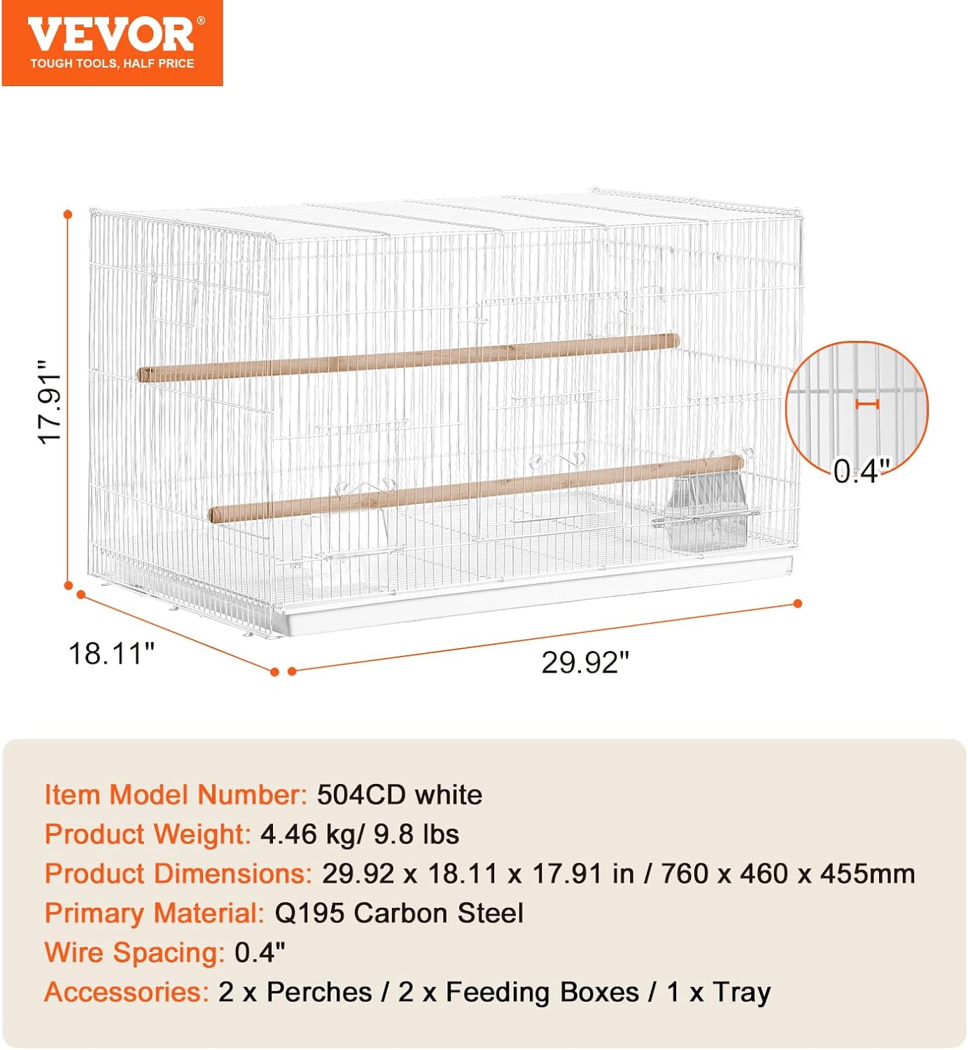 Espacio espacioso: mide 29.921 x 18.110 x 17.913 in / 30 pulgadas de largo x 18 pulgadas de ancho x 18 pulgadas de alto, esta jaula para pájaros con espacio de rejilla de 0.4 pulgadas, permite que las aves vuelen libremente.