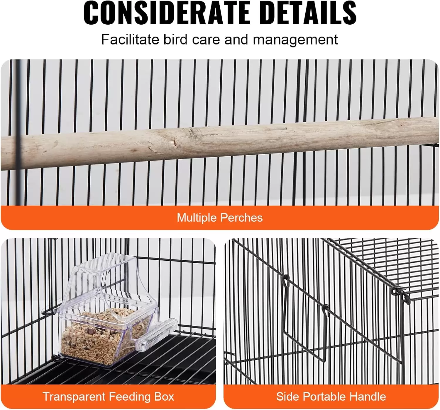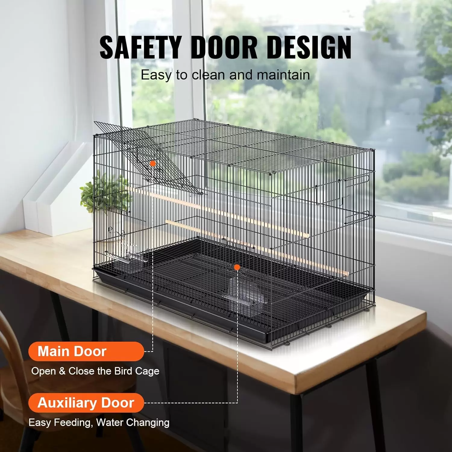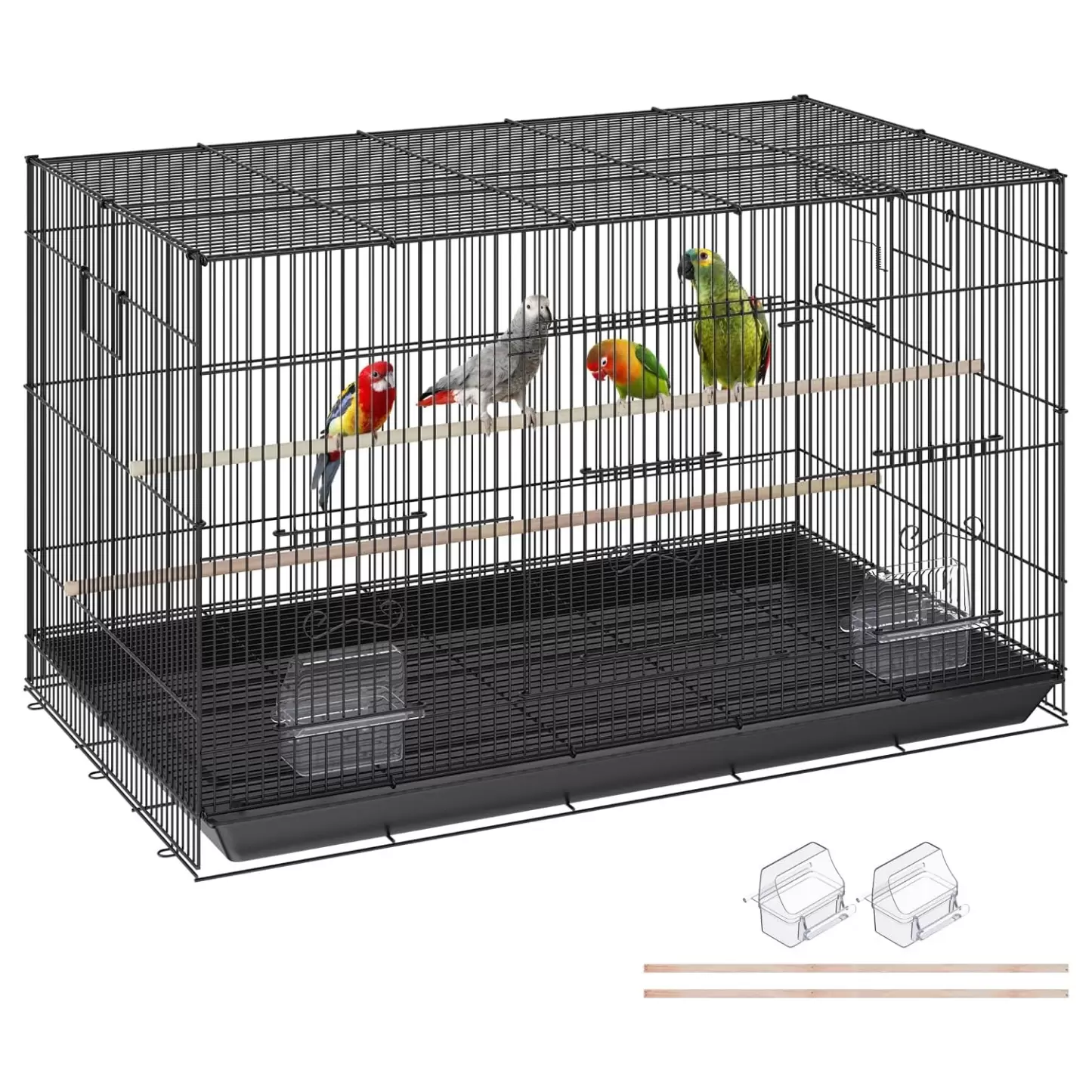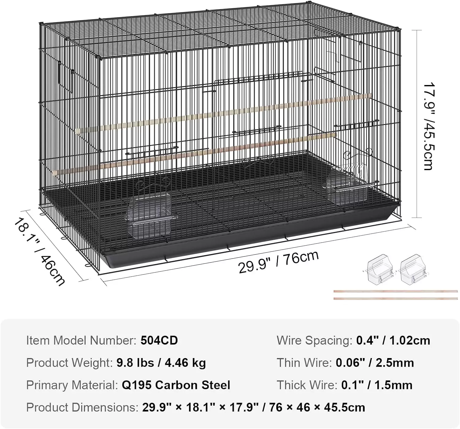 Amplio espacio: mide 29.9 pulgadas de largo x 18.1 pulgadas de ancho x 17.9 pulgadas de alto, con un espacio de rejilla de 0.4 pulgadas, esta jaula de vuelo para pájaros ofrece un espacio de vida espacioso y cómodo para que tus aves se muevan libremente, descansen y estiren sus alas. Permítales disfrutar de un movimiento libre y cómodo dentro de un área limitada.
