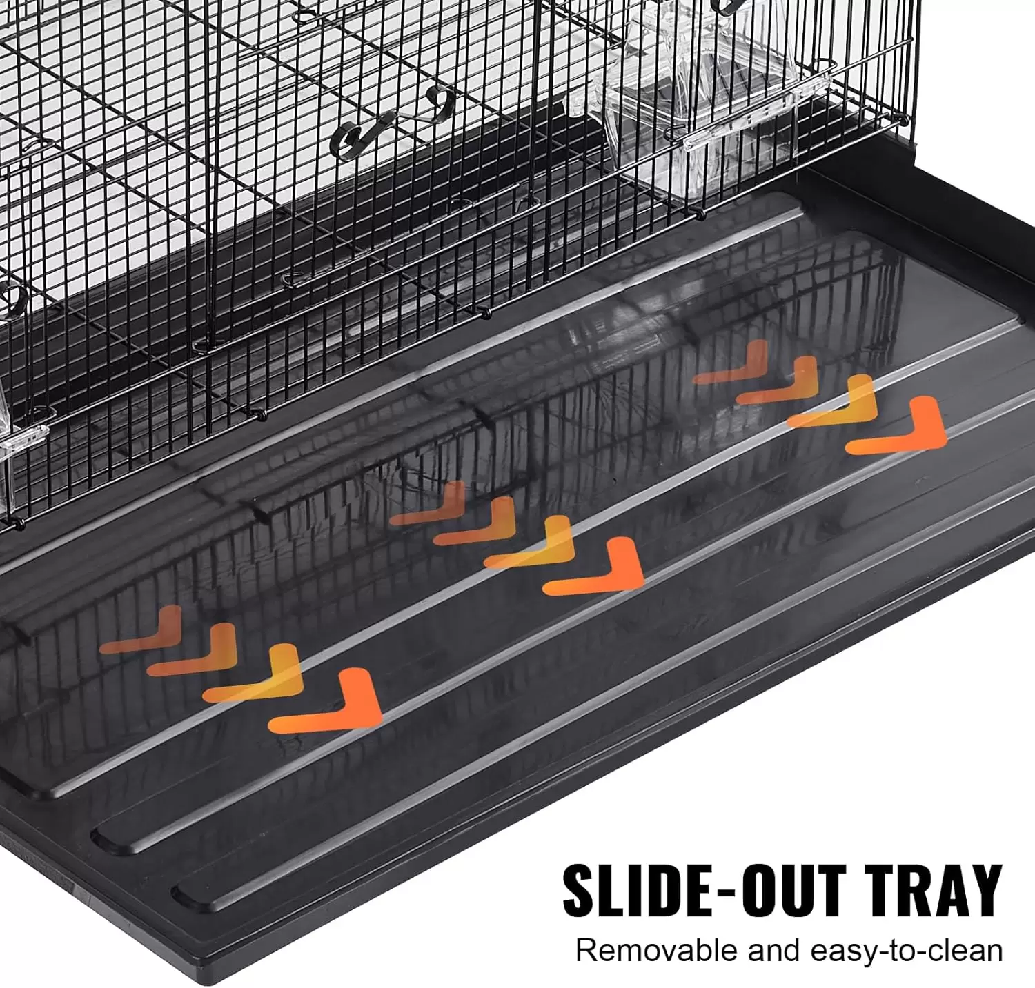 Fácil de limpiar y mantener: la jaula para loros cuenta con una bandeja deslizante desmontable para una fácil limpieza. La rejilla de malla evita que las mascotas caminen directamente sobre los desechos, pero también evita que los excrementos de aves se acumulen en la parte inferior. Esto asegura el bienestar de las aves y proporciona una forma conveniente de simplificar el mantenimiento.