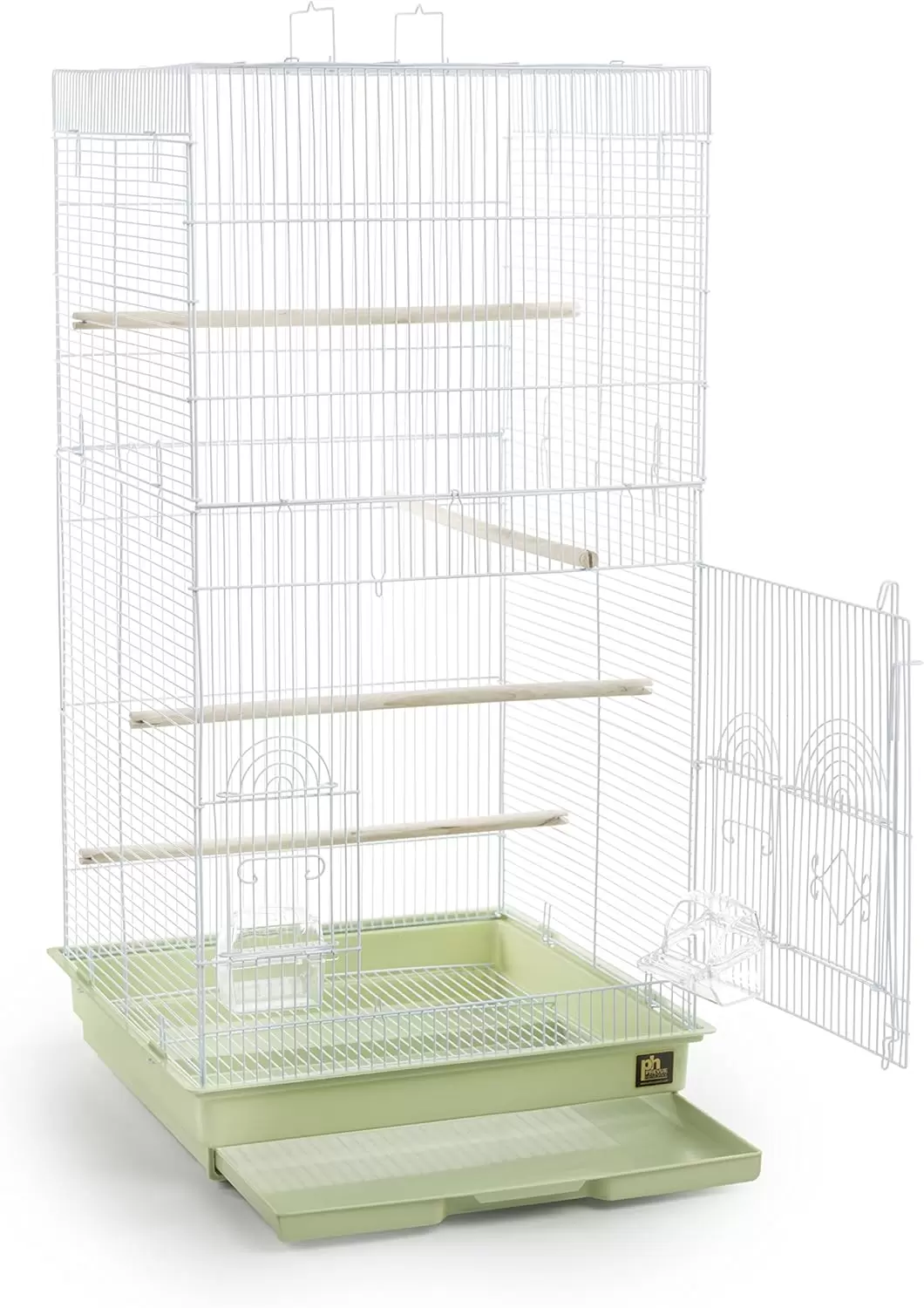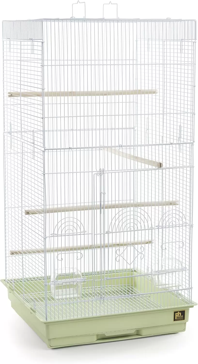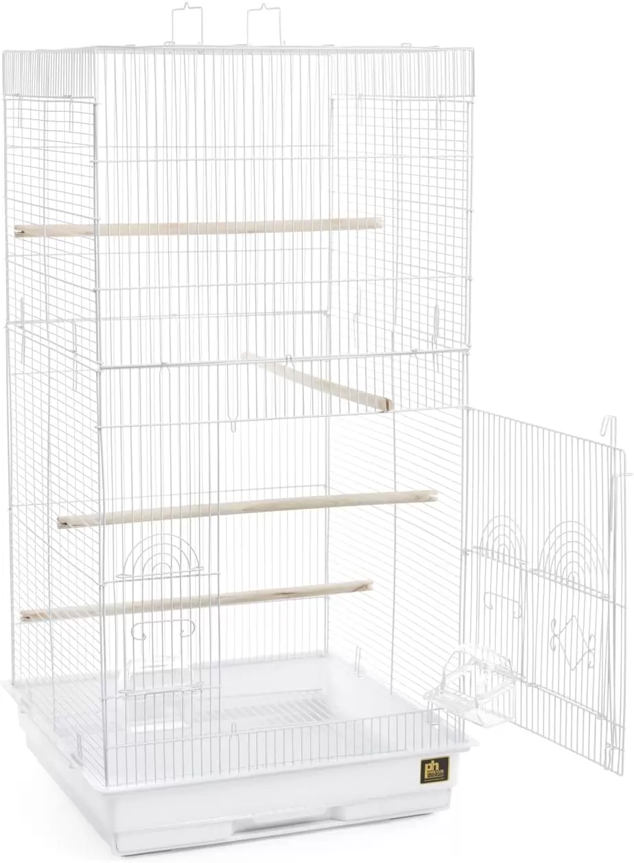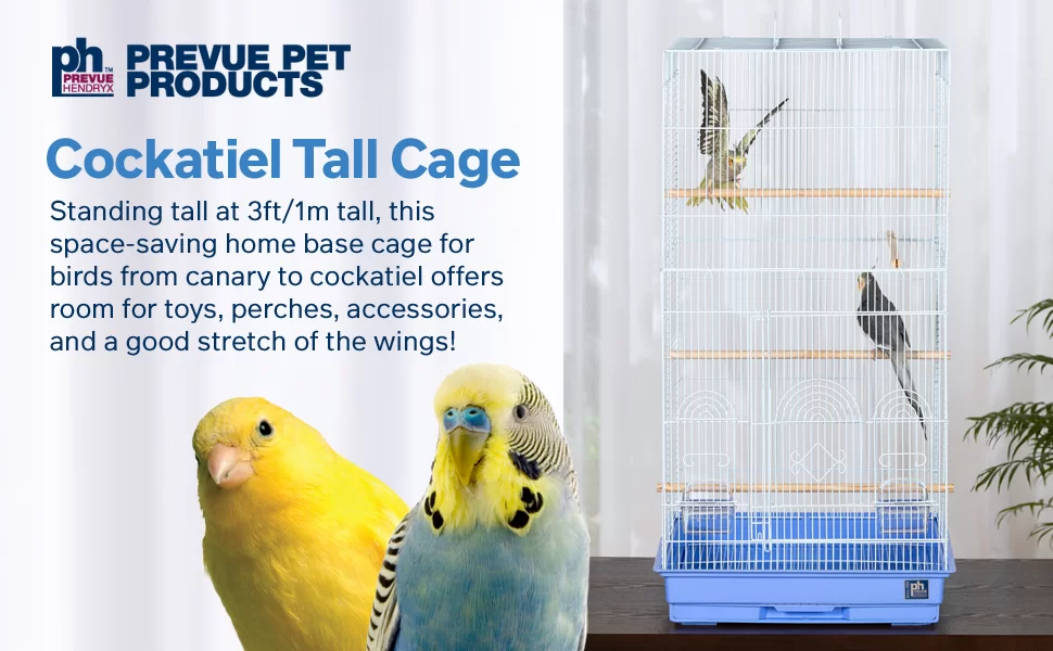Jaula extra alta y espaciosa de 36 pulgadas con asa. Ideal para cacatúas, periquitos y aves de tamaño mediano. Incluye perchas y vasos de plástico.