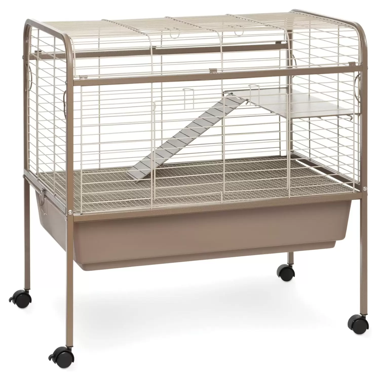 Jaula corral rodante . Incluye 2 puertas, rejilla inferior y tina profunda de extraíble. Soporte de acero para fácil manejo.