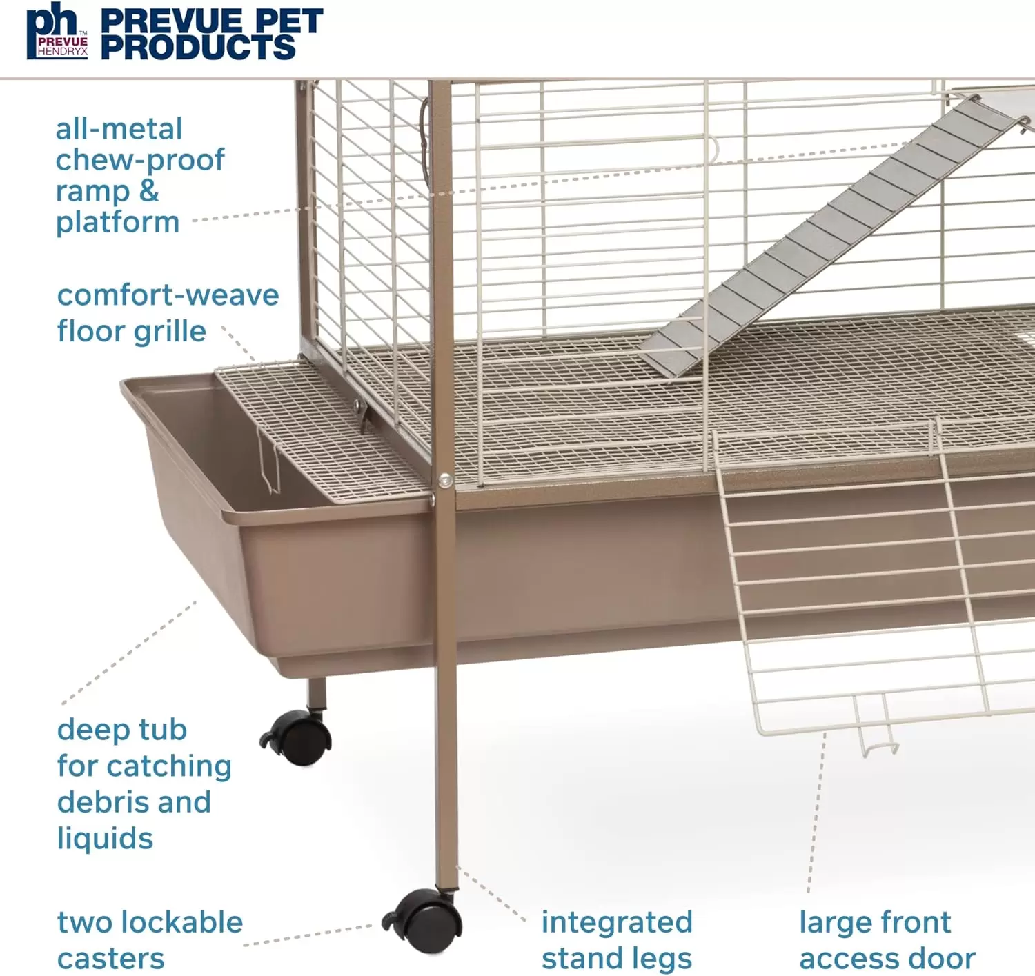 Rejilla Protectora: La base cuenta con una rejilla de metal extraíble que separa a su mascota de los residuos, protegiendo sus patas (corvejones) y asegurando un ambiente más limpio.
