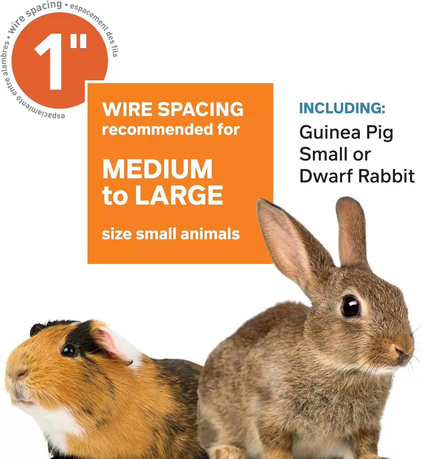 Esta jaula corral de tamaño generoso, con dimensiones de , ofrece un hábitat seguro y espacioso. Es ideal para conejos de tamaño mediano a grande, conejillos de indias o para alojar múltiples roedores pequeños.