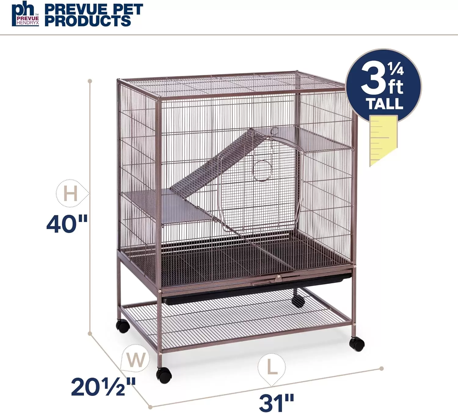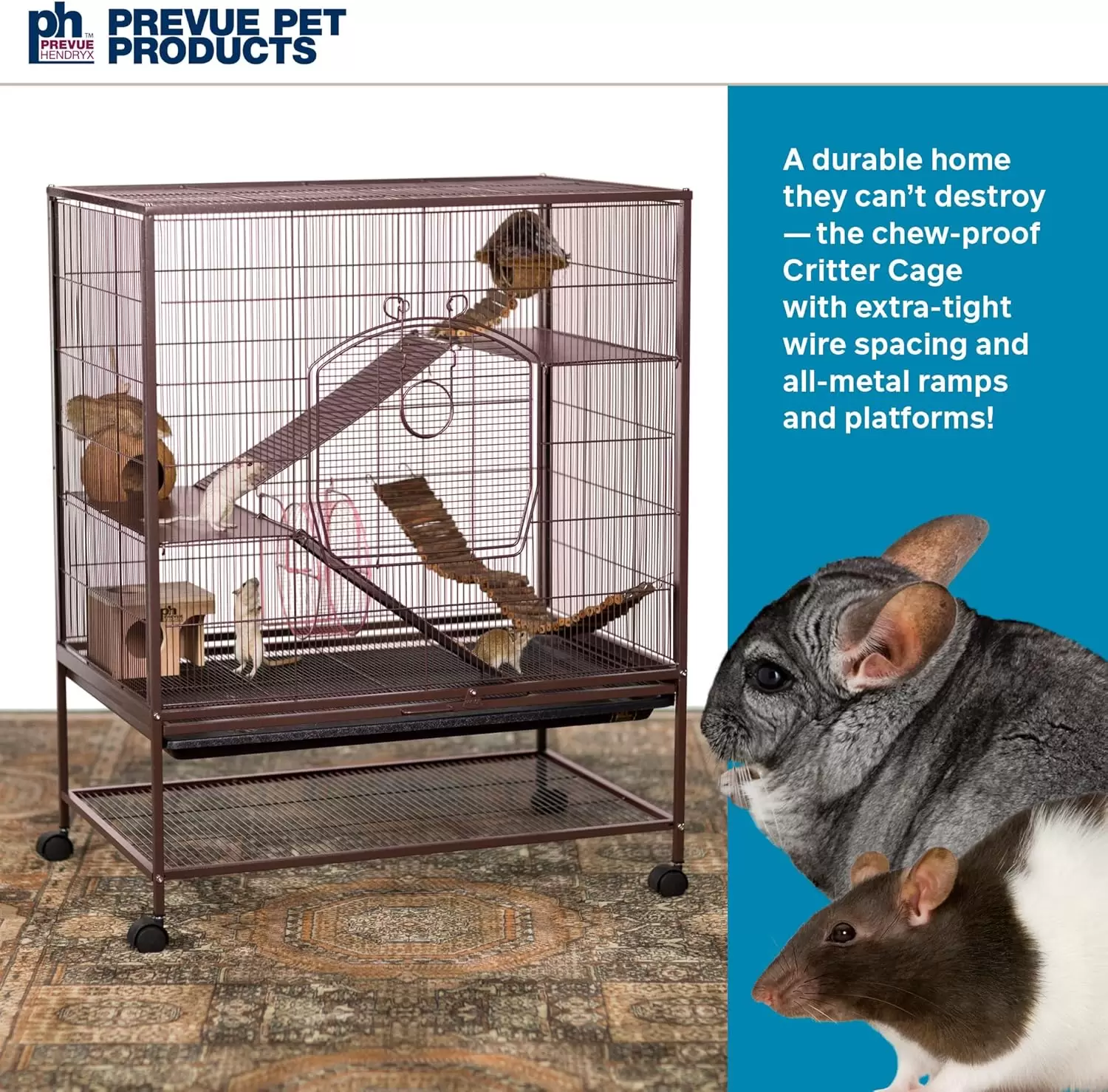 Esta jaula-hábitat, con dimensiones de , es perfecta para crear un hogar seguro y confortable para ratas, chinchillas y hurones bebé. El diseño vertical ofrece múltiples niveles de exploración.