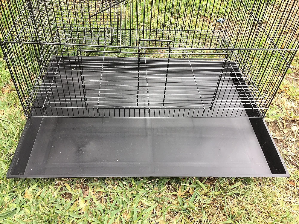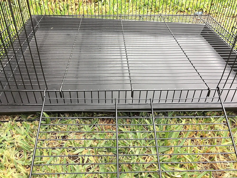 Dos puertas delanteras: con suelo de rejilla elevada de alambre extraíble de 3/8 pulgadas; con asa de fácil transporte