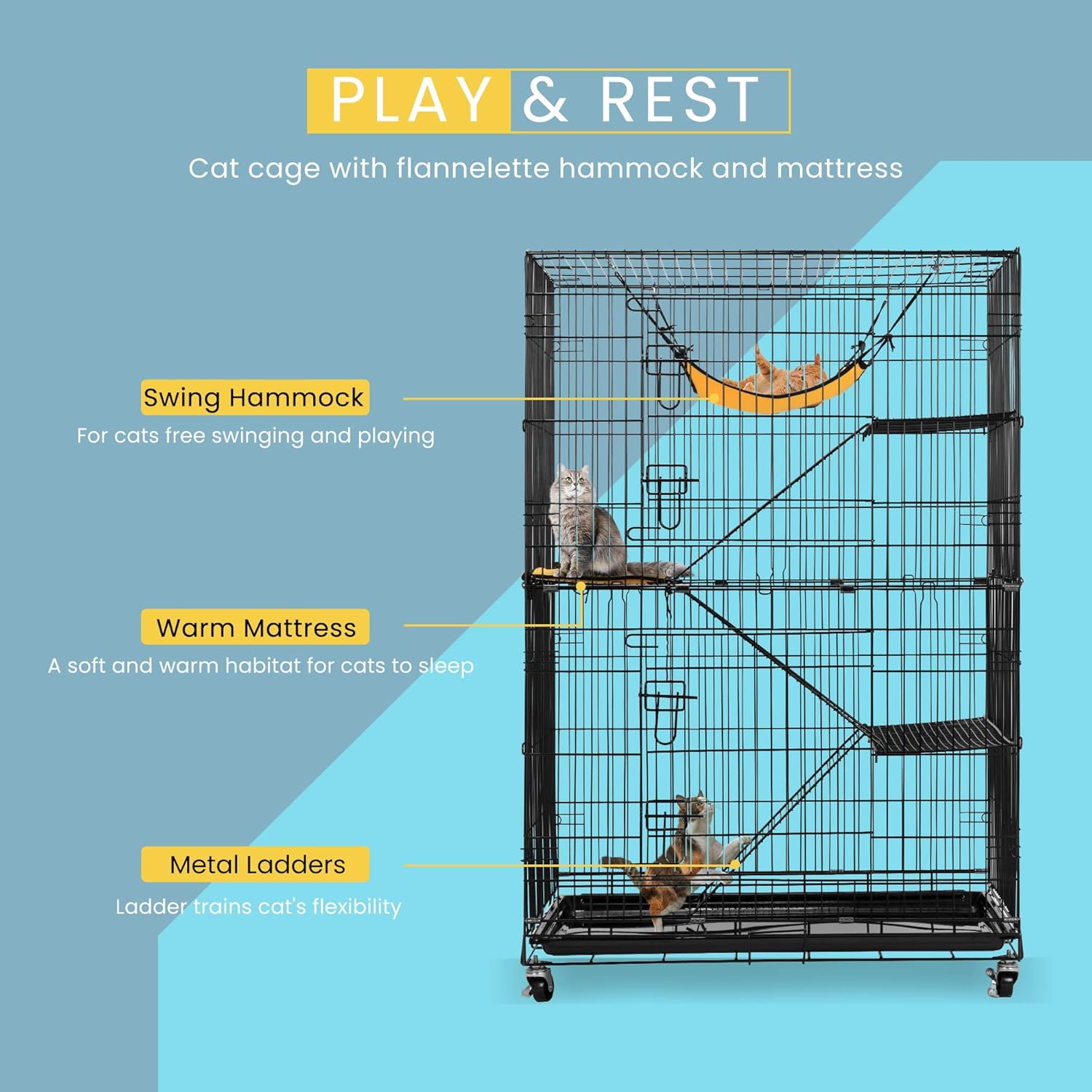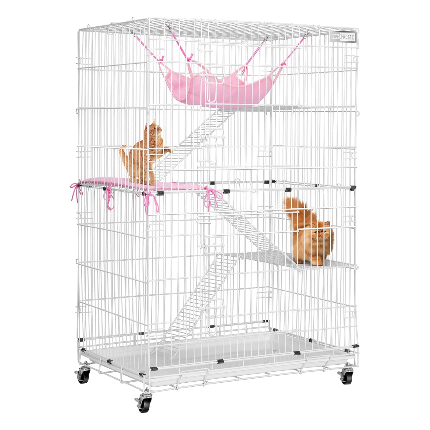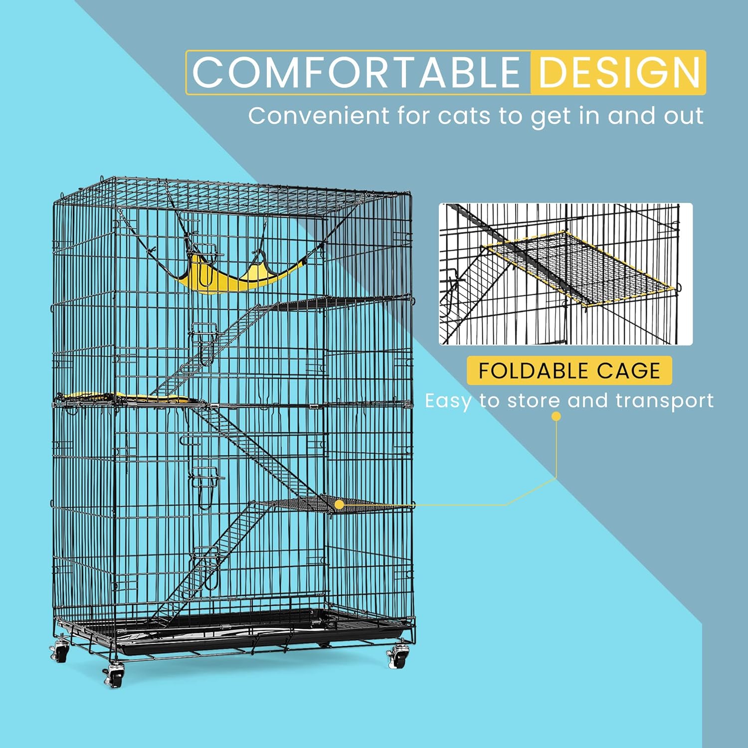 Jaula Plegable de Metal con Ruedas para Gatos – 4 Niveles y Hamaca (80x54x123 cm)