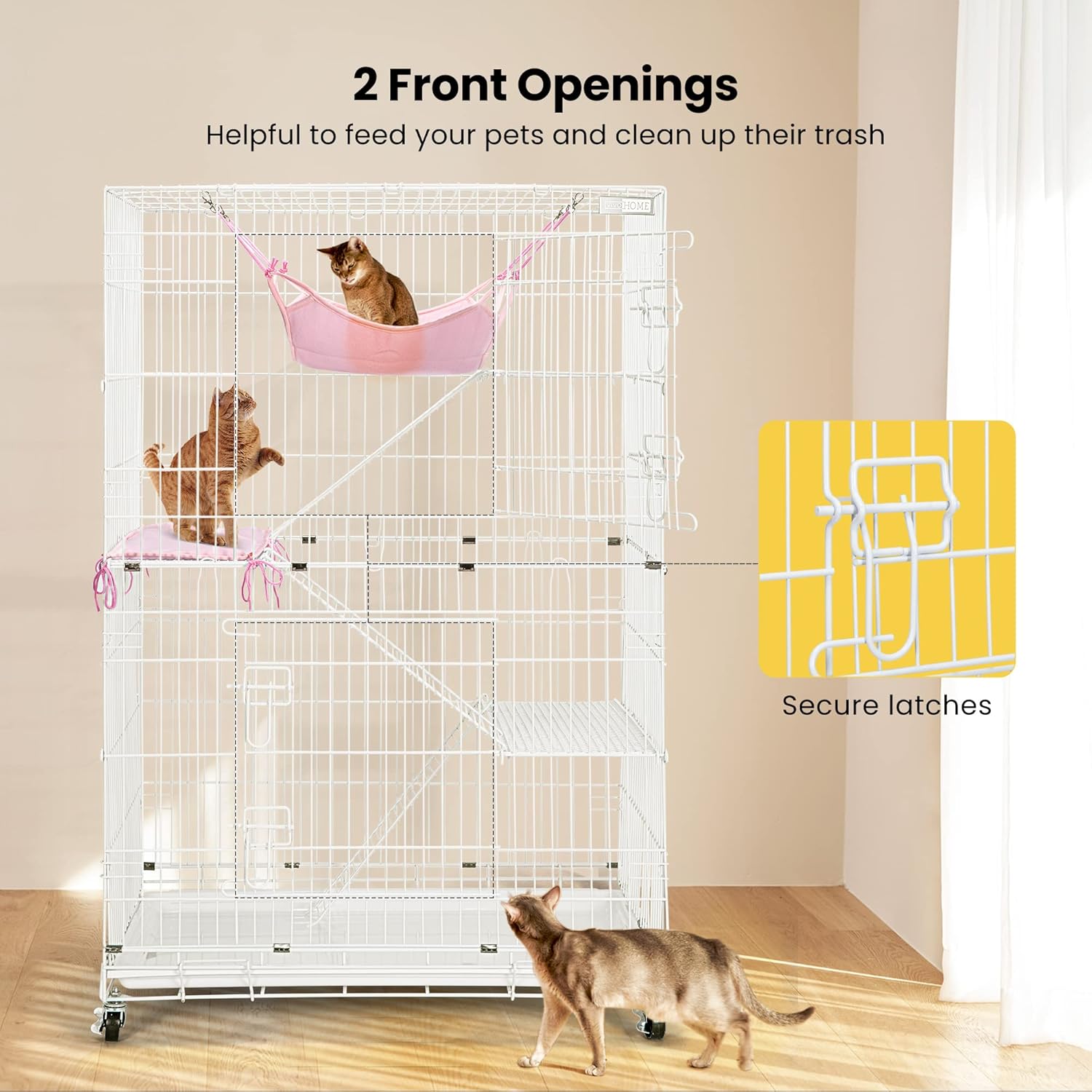 2 aberturas delanteras: las 2 puertas delanteras de gran tamaño con pestillos seguros permiten un fácil acceso y salida no solo para gatos, sino también para otros animales pequeños como conejillos de indias, hurones, conejos, etc. Este diseño cuidadoso también es útil para alimentar a tus mascotas y limpiar su basura