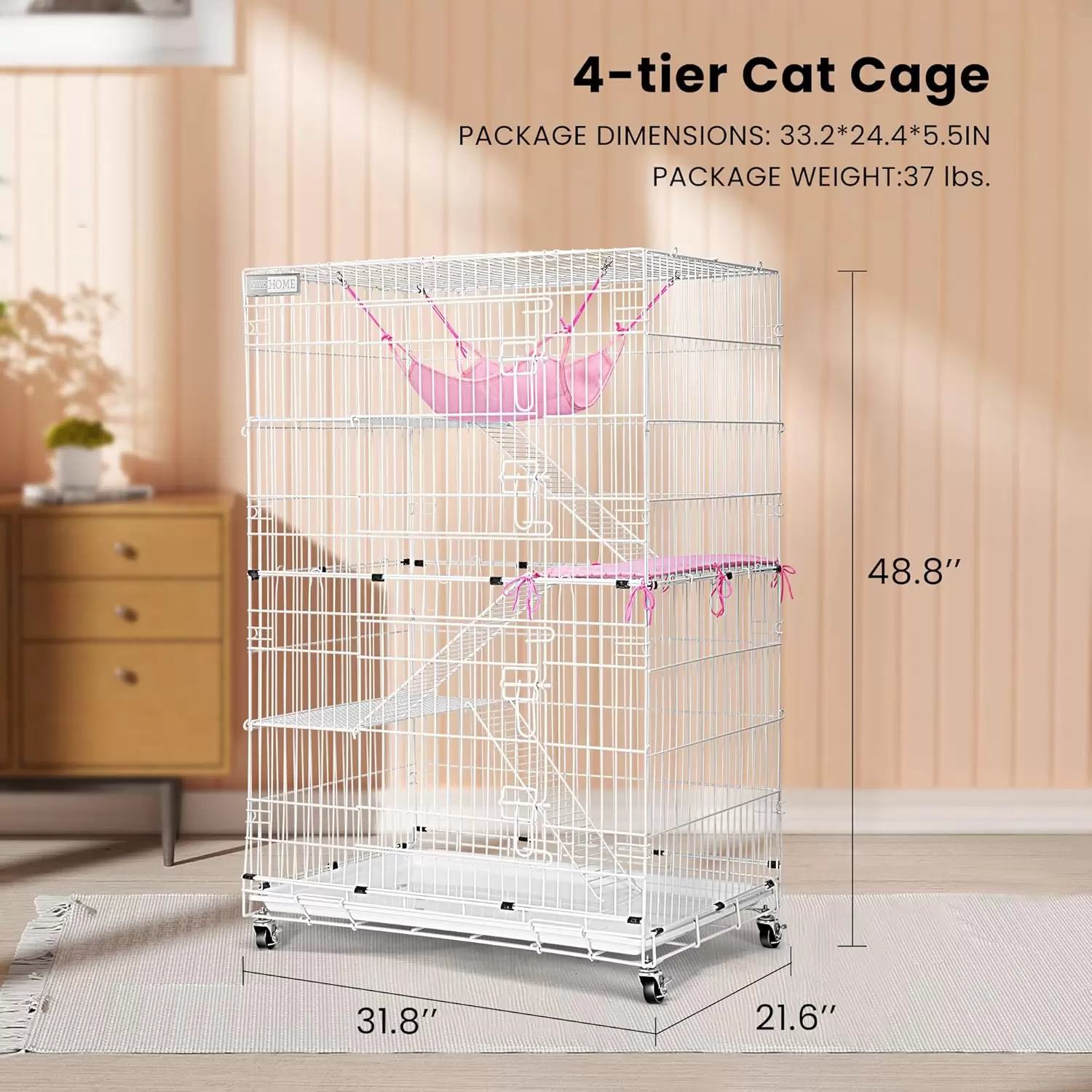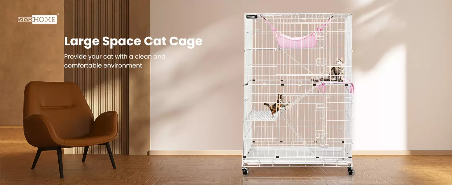 Diseño creativo: además de 4 niveles y 3 rampas, esta jaula plegable VIVOHOME para gatos también está equipada con una hamaca colgante y una alfombrilla suave, como un parque de atracciones para los encantadores gatos; es lo suficientemente grande para 1-3 gatos jugando juntos; Dimensiones: 32 pulgadas de largo x 22 pulgadas de ancho x 49 pulgadas de alto