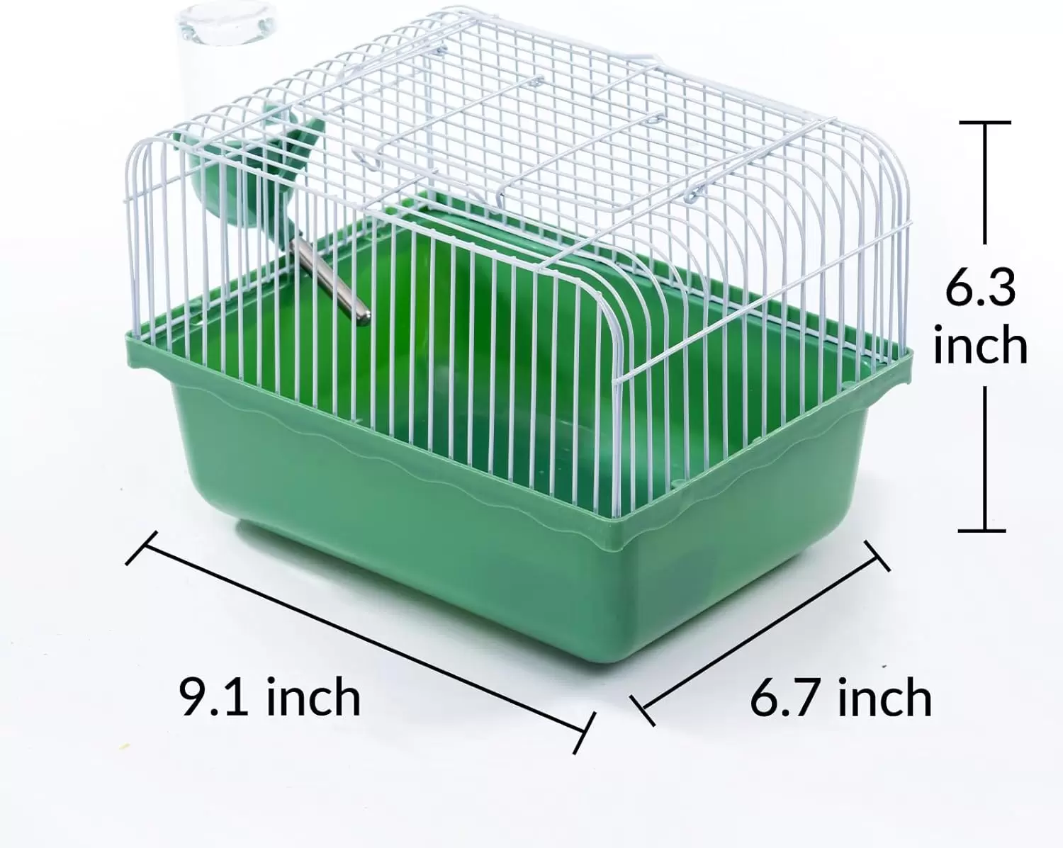 Totalmente equipada: la jaula está equipada con una simple caja de alimentos y una botella de agua, satisfaciendo las necesidades básicas de vida de los hámsters.