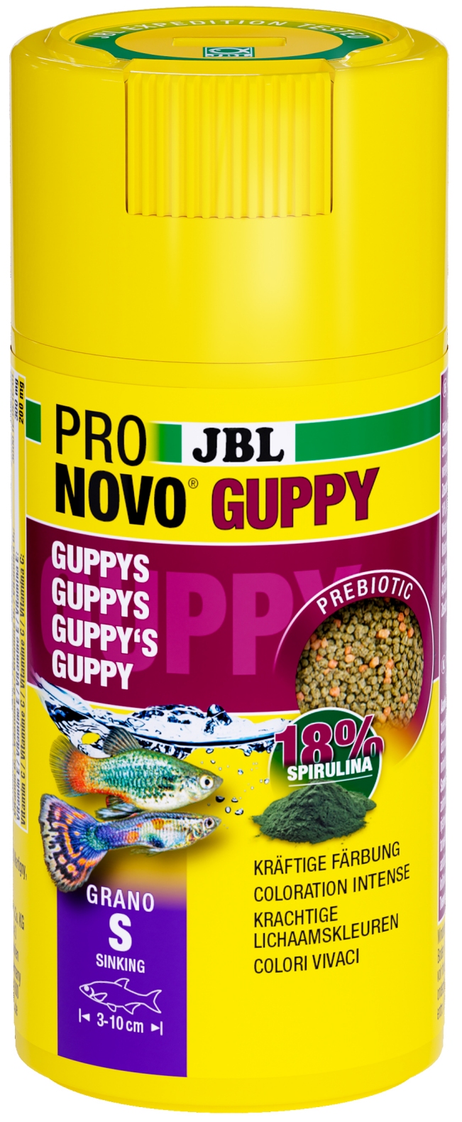ALIMENTO EN GRANULOS PEQUEÑOS IDEAL PARA PECES DE LAS FAMILIAS DE LOS VIVIPAROS Y ESPECIALMENTE LOS GUPPYS. AHORA EN ESTE FORMATO CON DOSIFICADOR.