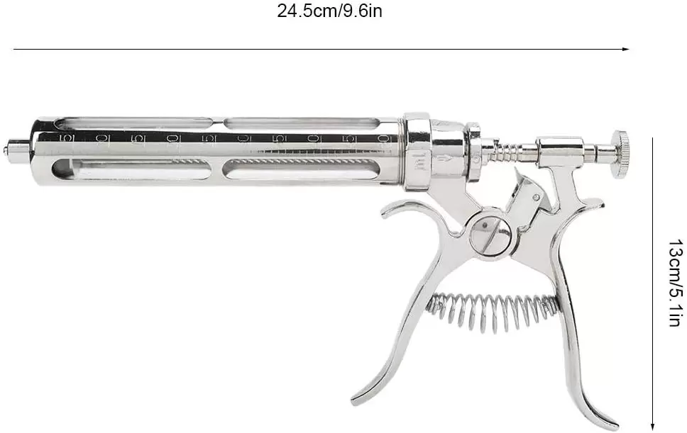 Jeringa Continua Veterinaria de 50 mL | Semiautomática de Acero Inoxidable