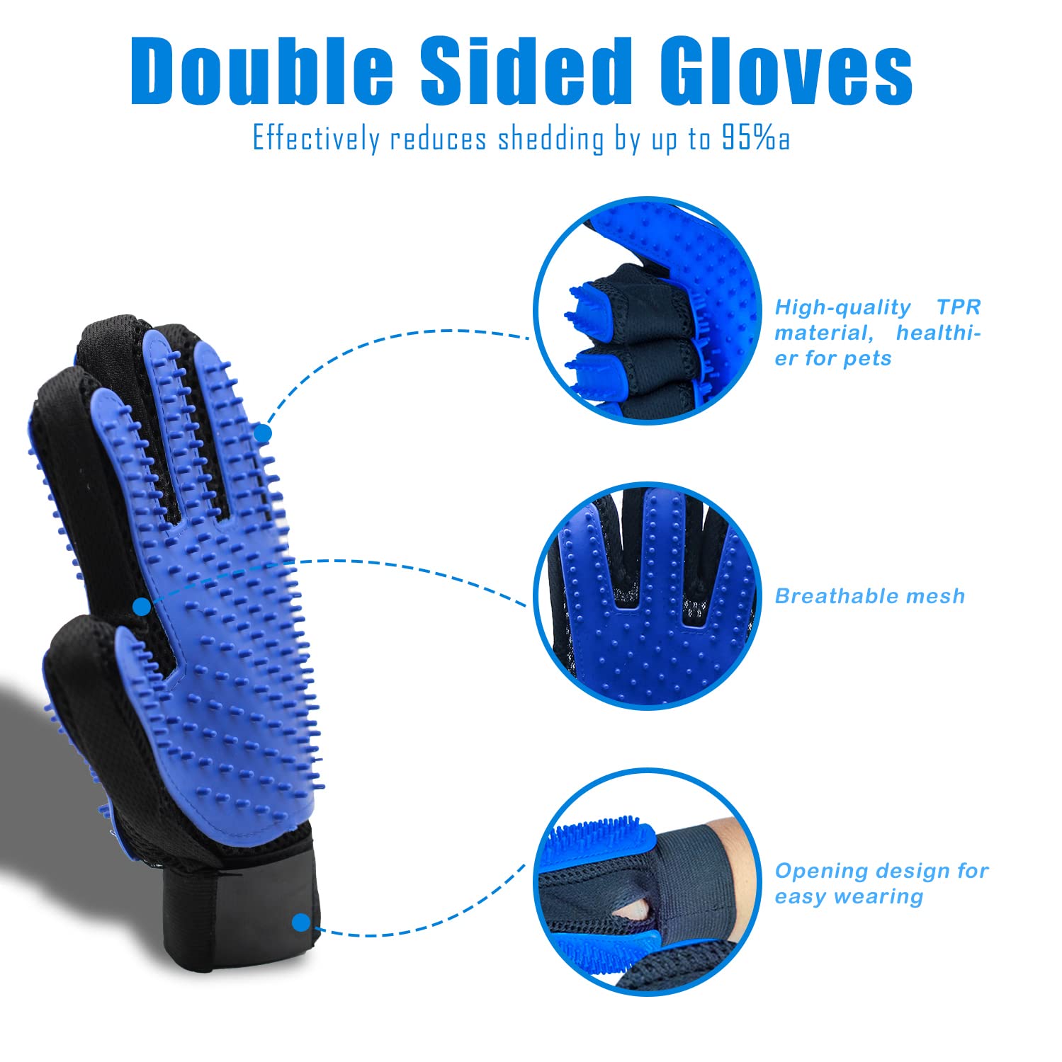 Adecuado para perros largos, cortos y rizados, gatos, caballos y otras mascotas, arreglar el cabello de forma rápida, suave y eficaz. El cabello se adhiere al guante y al cepillo, por lo que es fácil de despegar y tirar el cabello