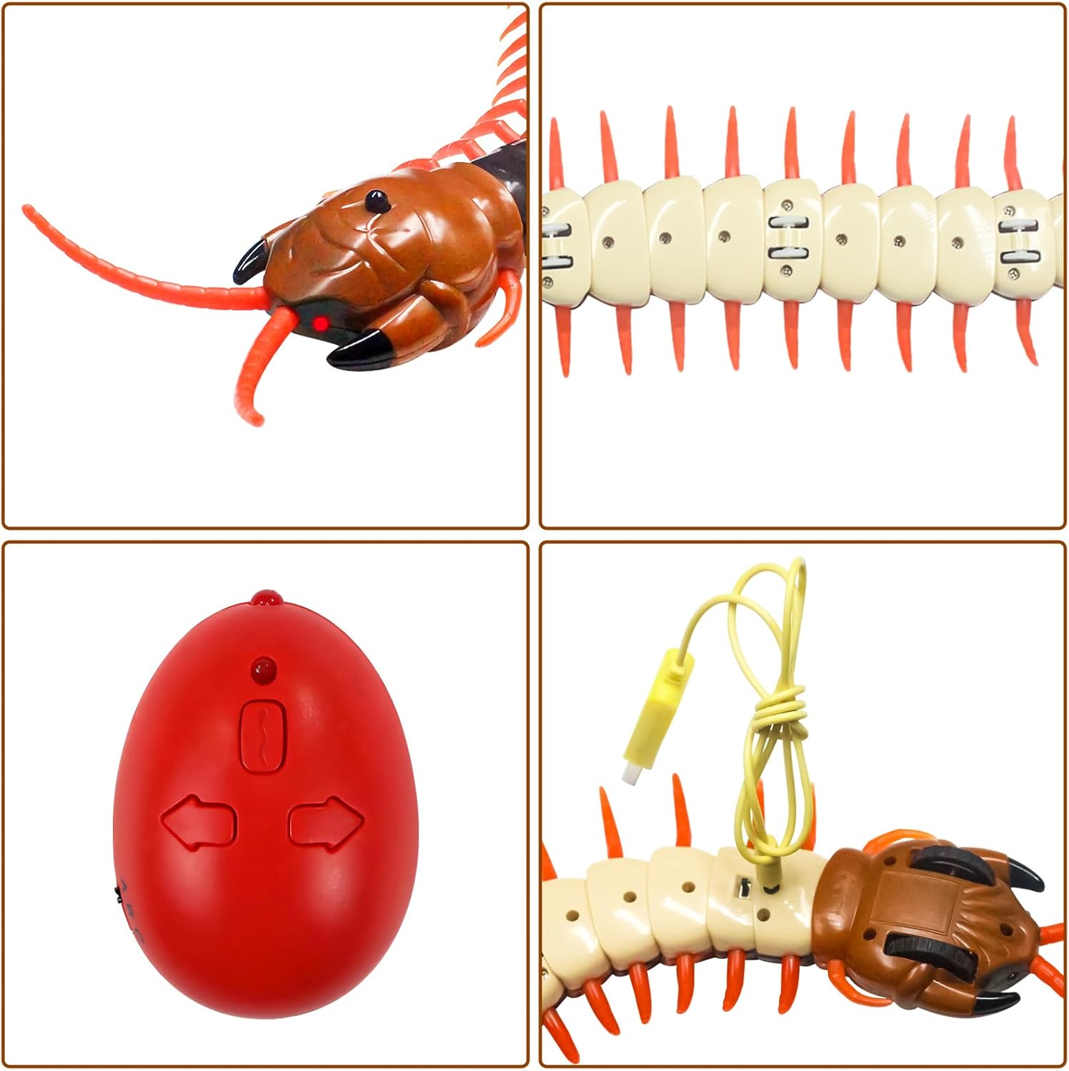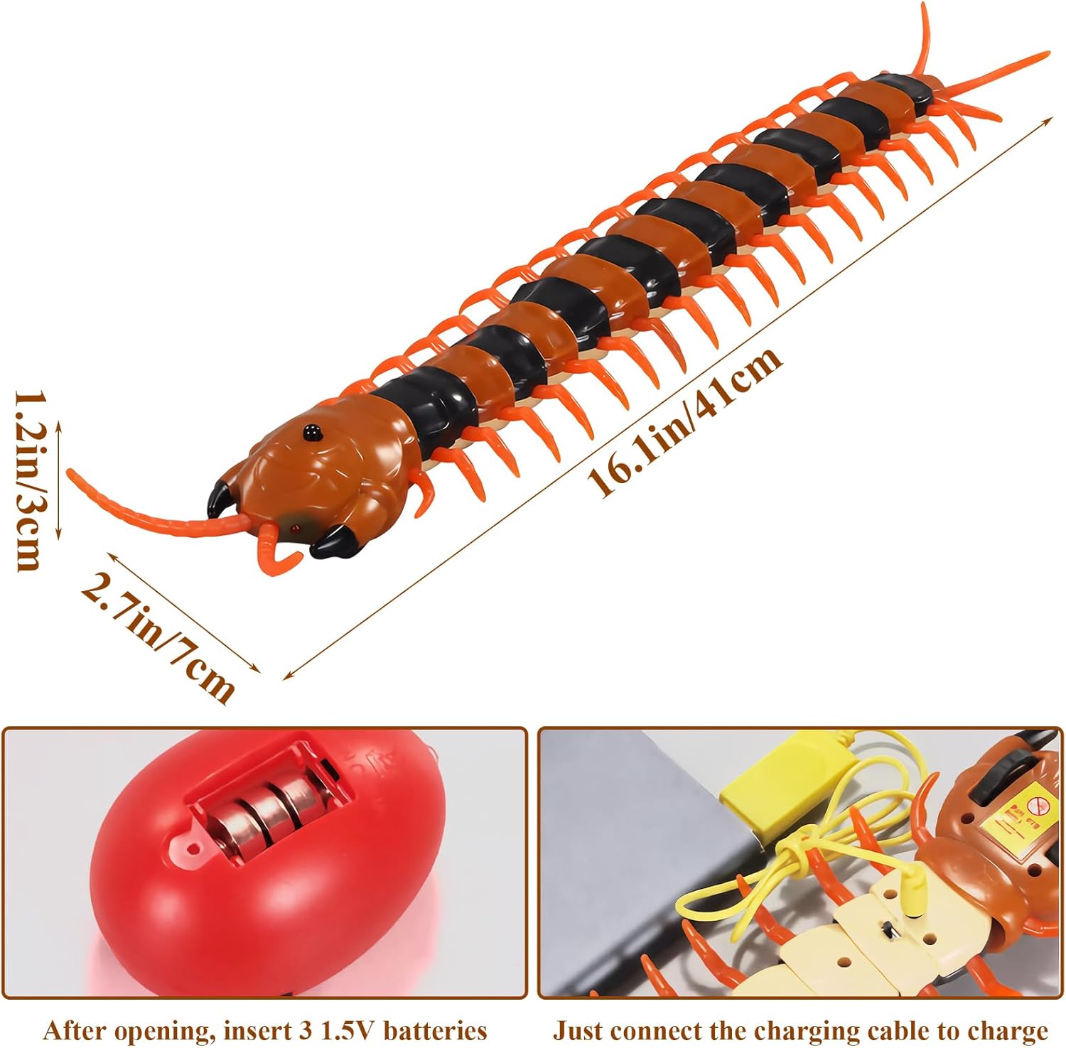Diseño realista: cuando el ciempiés se arrastra, su cuerpo y cola se balancearán rápida y flexiblemente, como un verdadero scolopendra arrastrándose por el suelo o la hierba. Con una forma de alta simulación con textura fina de piel, piernas flexibles y ojos brillantes, este juguete de control remoto proporciona una experiencia verdaderamente inmersiva y placentera para los entusiastas