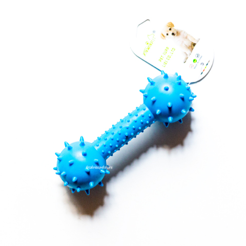 Juguete de jebe en forma de pesa con cascabeles