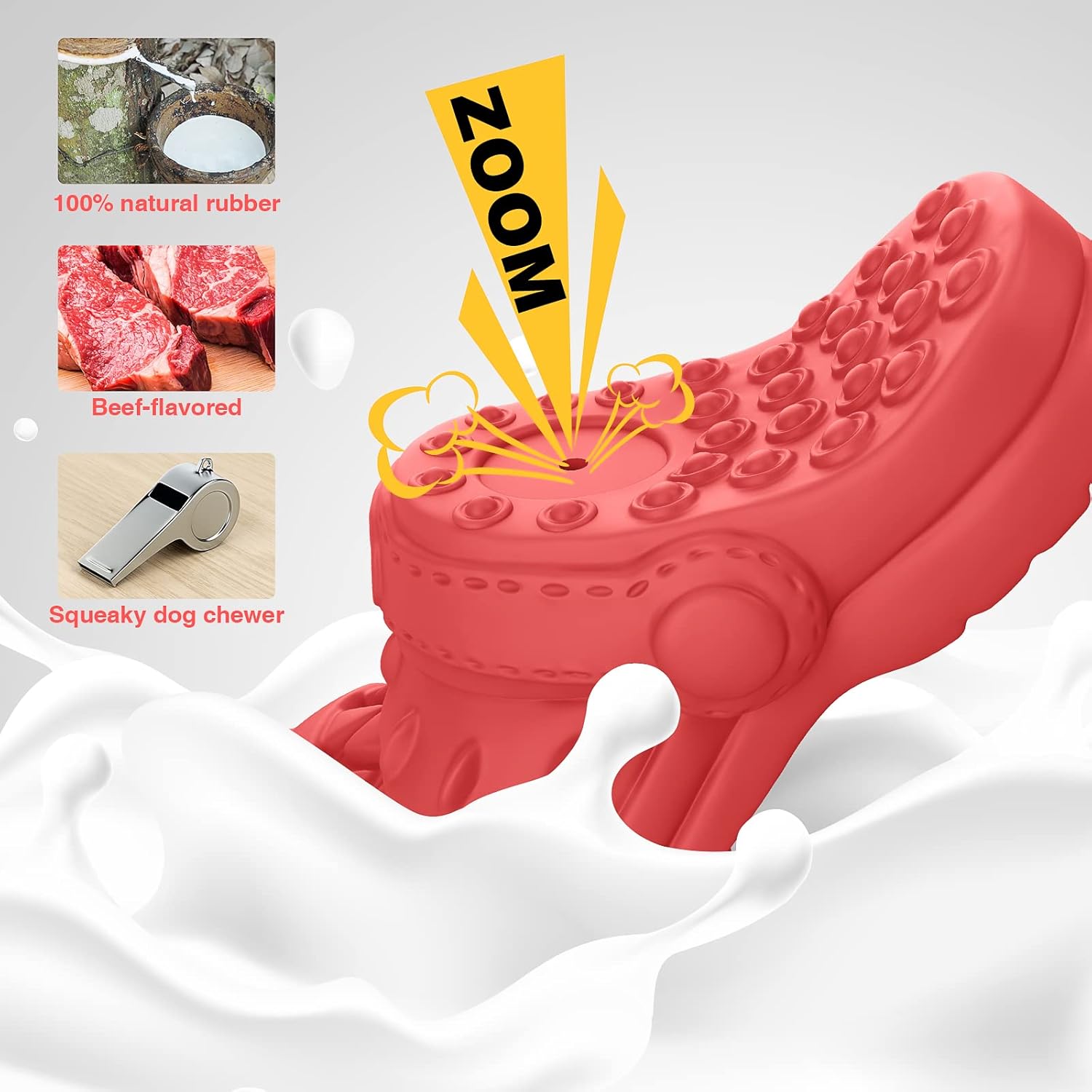 Diseño innovador de sabor y sonido: el diseño con sabor a carne y en forma de zapatilla atrae su atención, los hace emocionados y felices al masticar. Los chirridos hacen que los perros sean más curiosos e interesados en juguetes indestructibles para perros sin morder los muebles/zapatillas.