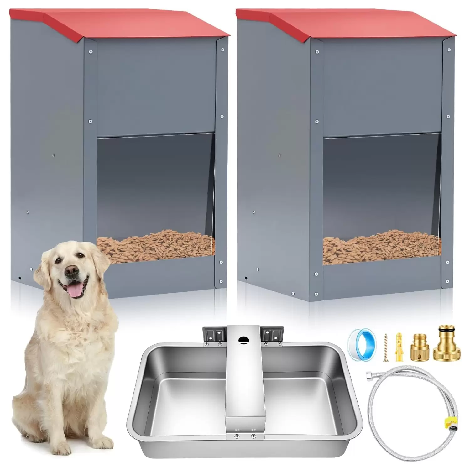 Este sistema de alimentación profesional de 3 piezas es la solución definitiva para familias con múltiples perros o criaderos. El conjunto incluye dos comederos que funcionan por gravedad de 11.3 kilos cada uno y un bebedero automático de alta capacidad de 8.3 litros, diseñados para garantizar un suministro constante de suministros frescos sin necesidad de energía eléctrica.