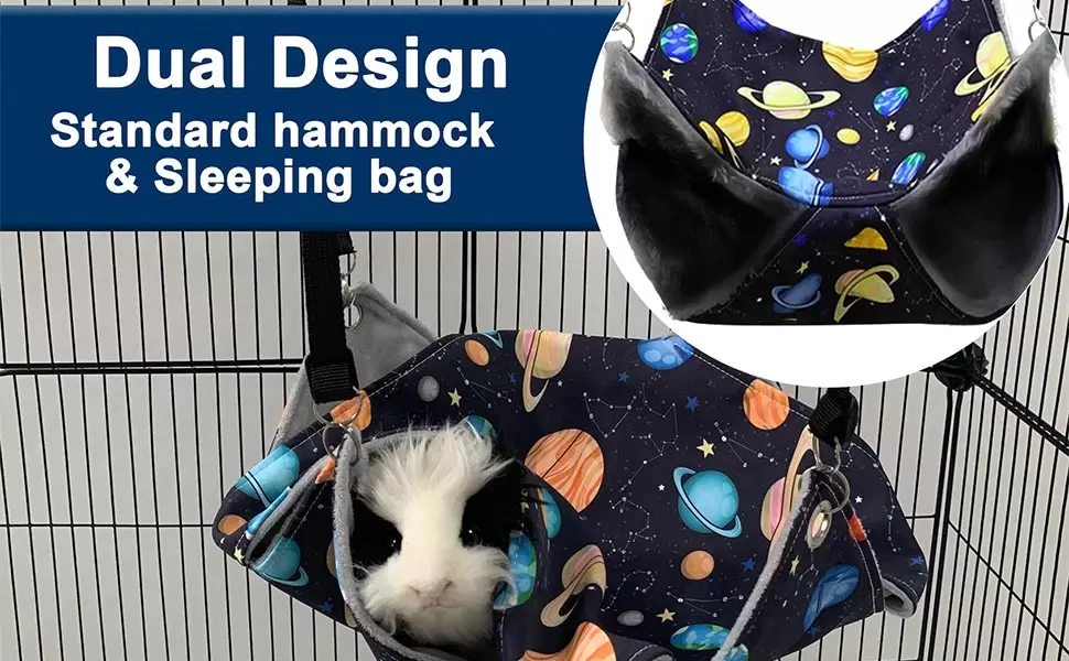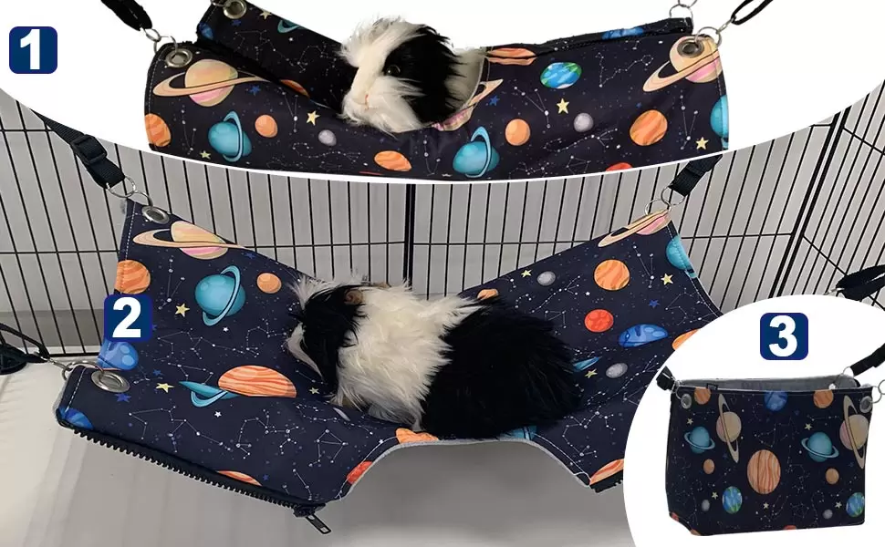 Material masticable resistente: la hamaca está hecha de lona en el exterior y forro polar cálido en el interior. Con clips de metal y conectores de clip evitan que la rata hurón o cualquier animal pequeño la mastique