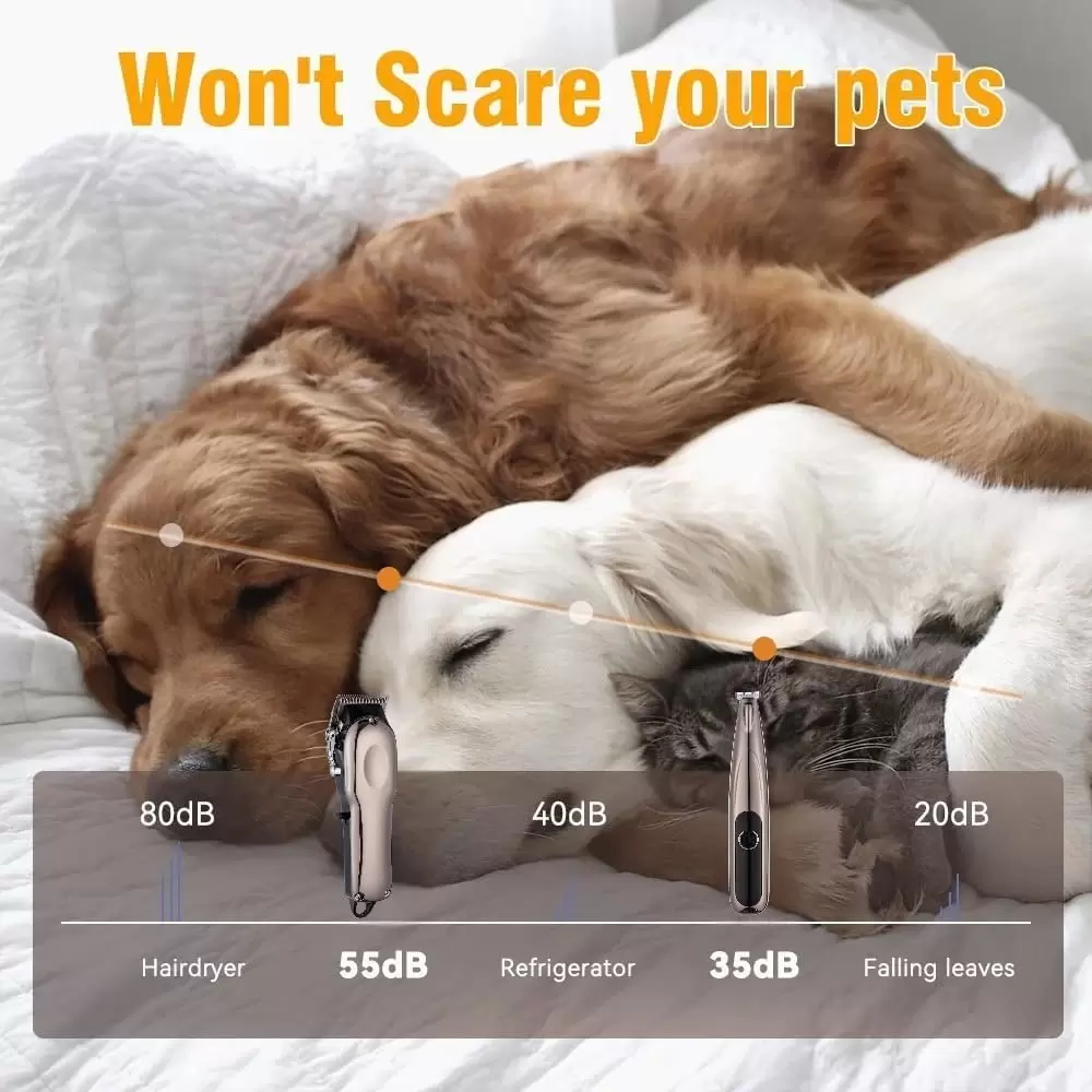 El diseño silencioso garantiza que los niveles de ruido no superen los 55 decibelios durante el uso, manteniendo a las mascotas cómodas y seguras durante el aseo y evitando reacciones de estrés.
