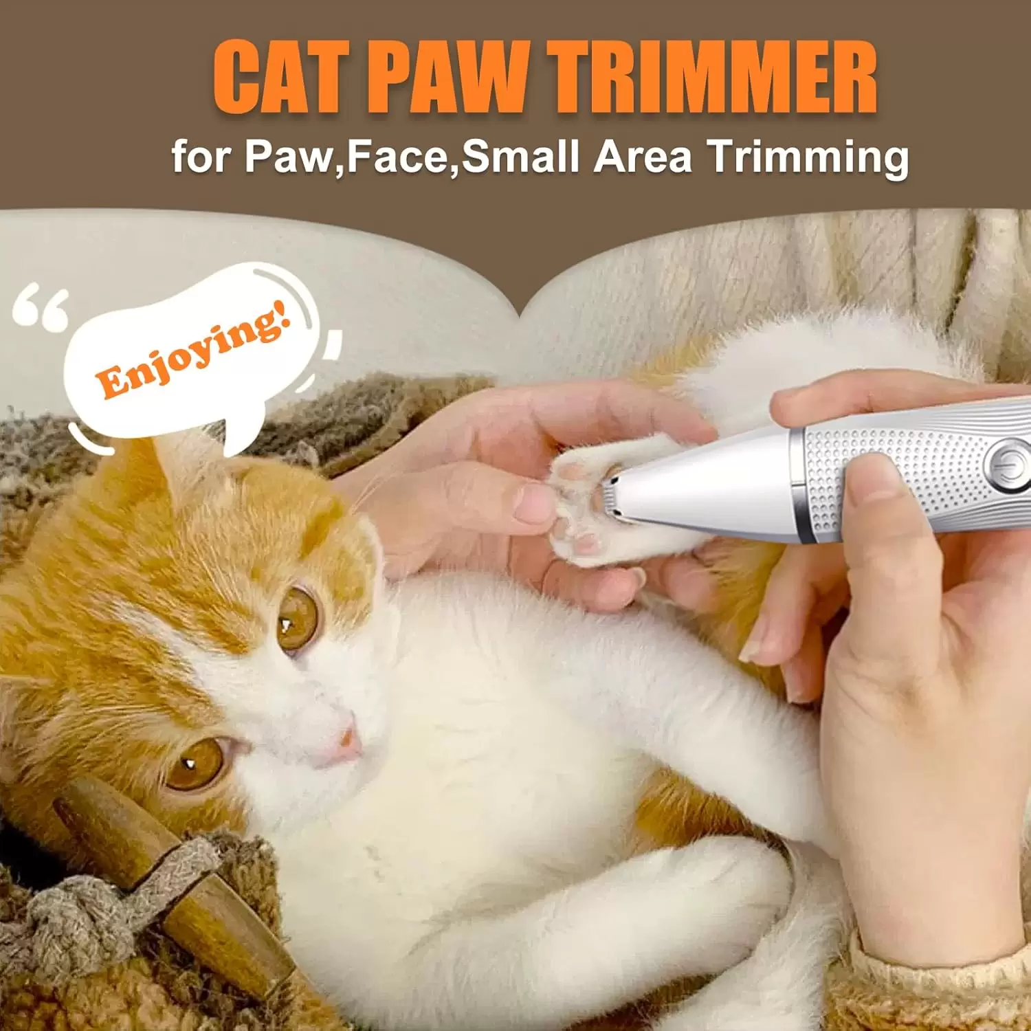 Ultra silencioso: el ruido silencioso de la cortadora de gatos cuando se trabaja es inferior a 50 dp, por lo que es ideal para gatos que son sensibles al ruido. Recorta las patas, la cara, las orejas, las piernas y otras áreas de tu querido felino sin causar ningún miedo o ansiedad. Para gatos de pelo largo, primero recorta su cabello a la longitud adecuada con tijeras y peines de acero, luego utiliza un recortador eléctrico 3 en 1 para recortar el cuerpo para evitar tirones