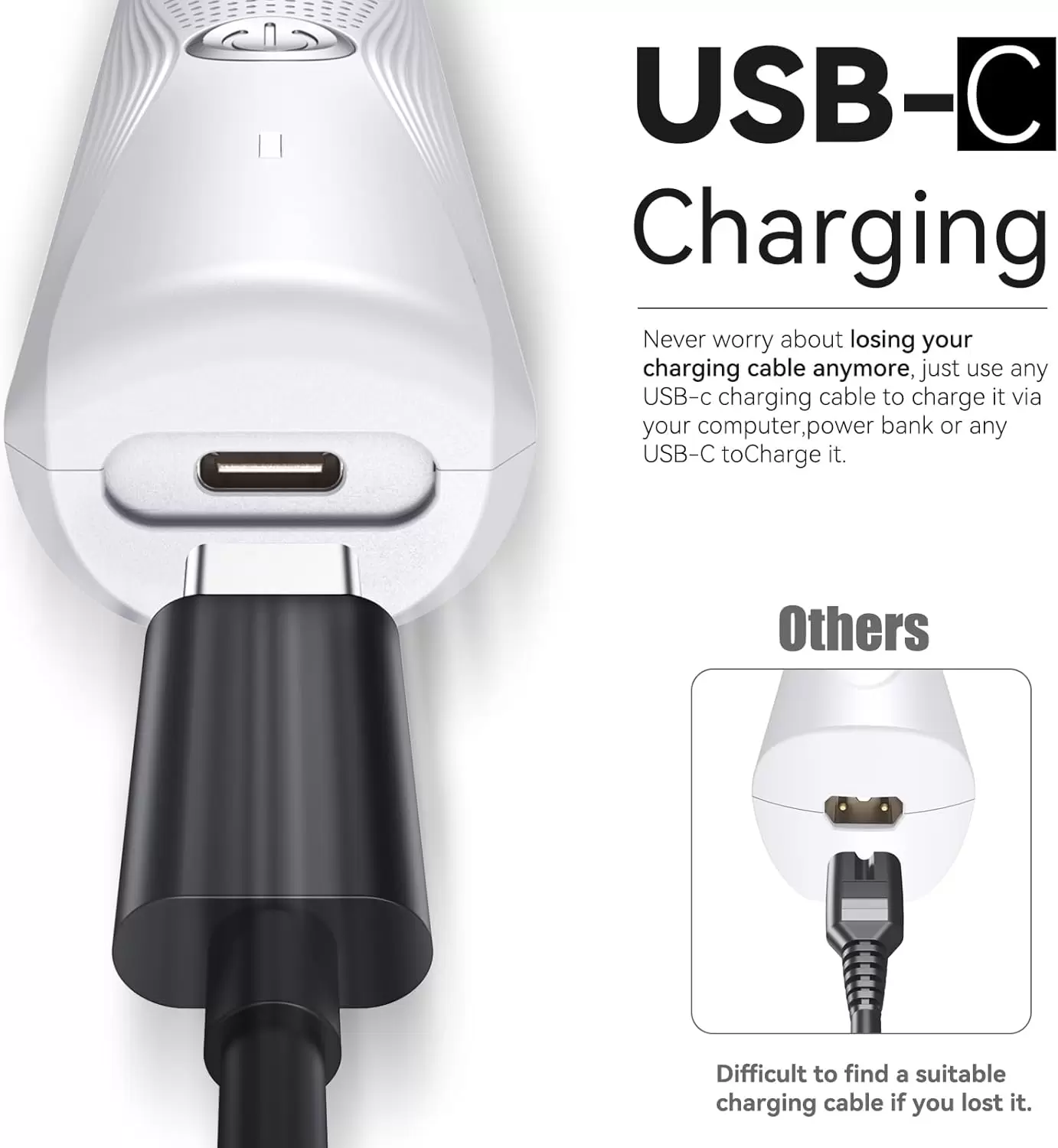 Corte sin enganches e impermeable IPx7: las cuchillas de cerámica afiladas pueden proporcionar un excelente rendimiento de corte, reduciendo en gran medida las molestias de las mascotas. El diseño impermeable IPx7 te permite limpiar directamente en agua, lo que hace que tu limpieza y mantenimiento sean más convenientes y eficientes. Además, utilizamos el puerto USB-C estándar para la carga, por lo que nunca tendrá que preocuparse por no encontrar un cable de carga adecuado.
