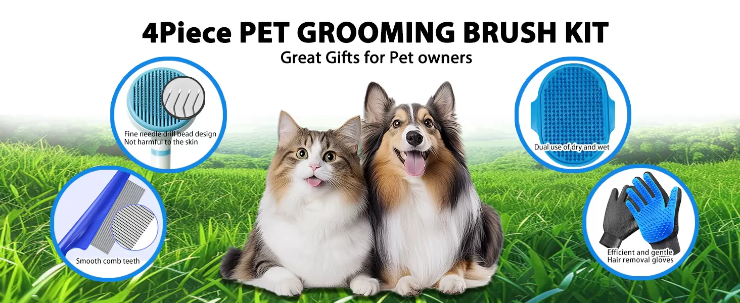 Kit de aseo con cepillo, guantes y peine. Herramientas completas para eliminar el pelo muerto, desenredar nudos y dar masajes, ideal para un pelaje saludable.