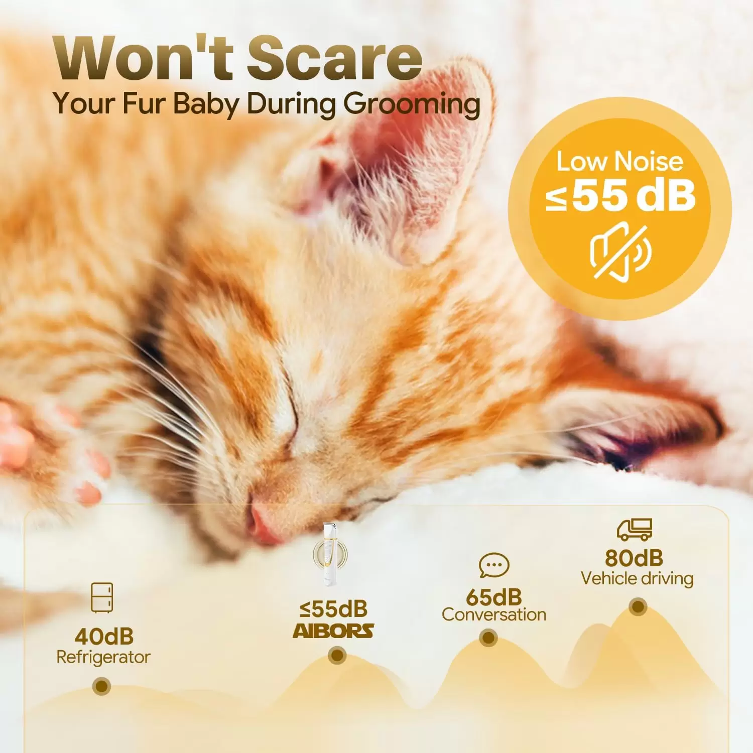 Cortadora de pelo silenciosa para perros: la recortadora de aseo para mascotas está equipada con motores avanzados y tecnología silenciosa, con velocidad rápida y baja vibración. El ruido es de aproximadamente 55 dB al recortar, asegurando que tu mascota esté cómoda durante todo el proceso de aseo y no asustará a tu bebé peludo. Su cabello se puede recortar a la longitud correcta con tijeras y peines de acero, y luego la recortadora eléctrica se puede utilizar para recortar el cuerpo para evitar tirones