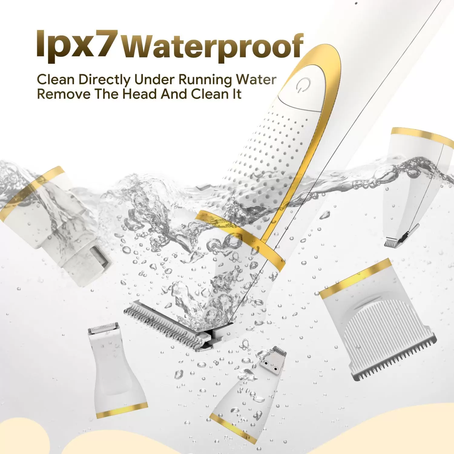 Kit de aseo inalámbrico 4 en 1. Incluye cortapelos y molinillo de uñas. Su diseño silencioso y a prueba de agua es ideal para un cuidado profesional y seguro en casa.