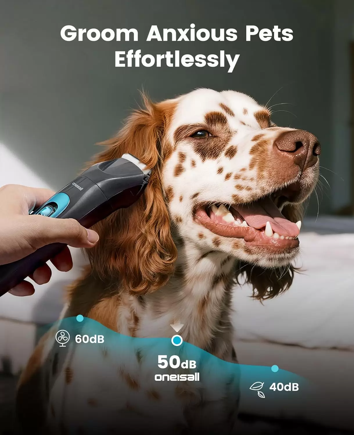 El cortapelos inalámbricos para perros está diseñado específicamente para perros, gatos, mascotas. El nivel de ruido de la recortadora de pelo de perro es inferior a 50 decibelios, por lo que no asustará a tus mascotas. El diseño inalámbrico de cortapelos para perros oneisall te permite no estar atado a cables, puedes preparar perros en interiores y exteriores, perfecto para principiantes y dueños de mascotas para usar recortadora de perros para aseo en casa, pero también es adecuado para peluqueros profesionales de mascotas y médicos de mascotas