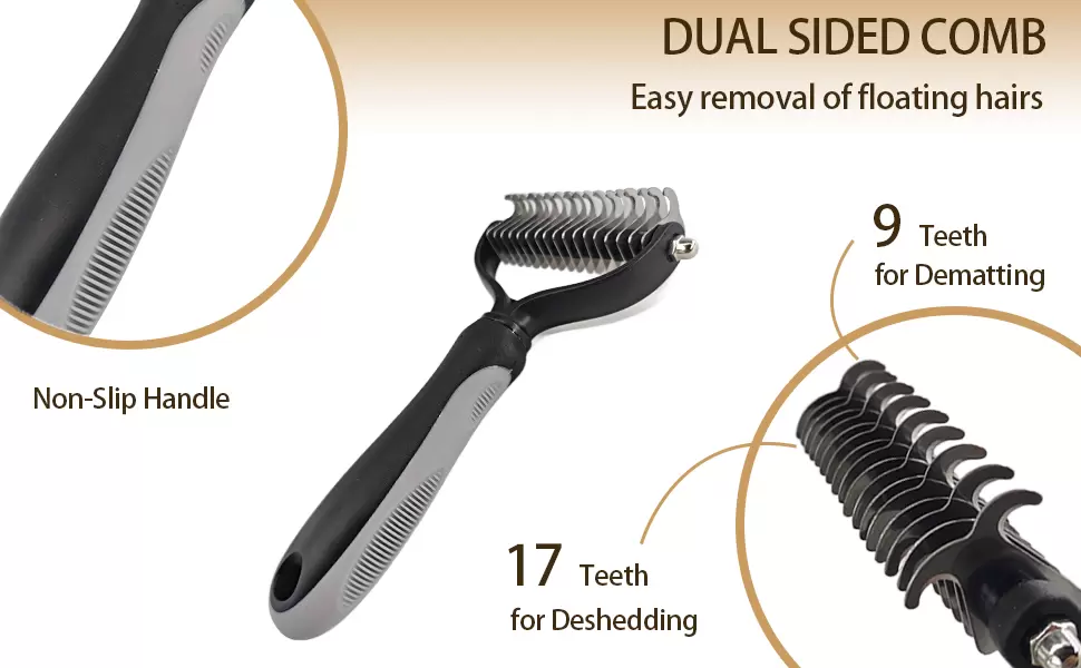 Una variedad de diferentes herramientas de eliminación: 1. El cepillo de aseo autolimpiante para perros y gatos puede fácilmente para que las mascotas se desprendan sin esfuerzo; 2. Rastrillo de doble cara para quitar la capa inferior del perro y el gato, para reducir la pérdida de cabello; 3. Cepillo de baño para limpiar y masajear a fondo cada pulgada del pelo de la mascota; 4. Peine de dientes gruesos y finos para peinar el aseo de las mascotas, para eliminar la capa interna anudada. para eliminar las pulgas