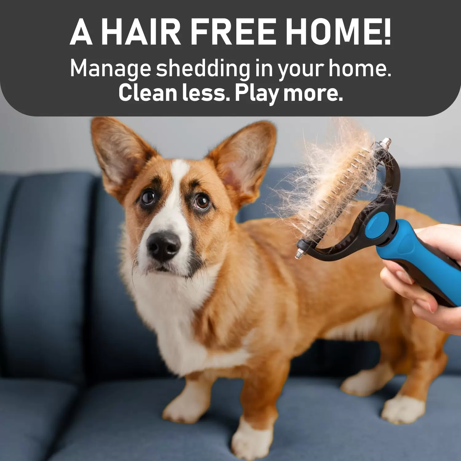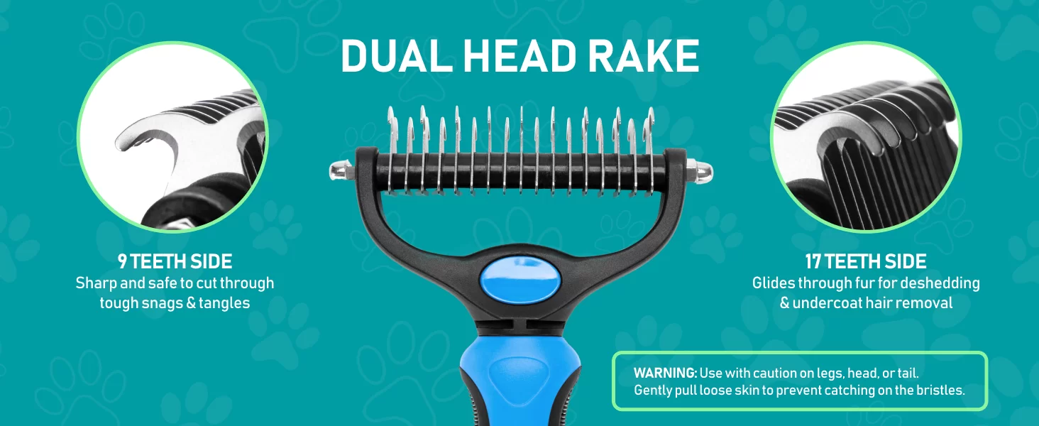 Diseño de doble cara: Nuestro cepillo y peine de aseo para perros es perfecto para desenredar y quitar el pelaje suelto de tu mascota. con un diseño de doble cara, utiliza el lado de 9 dientes para hacer frente a los enredos difíciles y el lado de 17 dientes para reducir el volumen y eliminar el pelo suelto de tu mascota.