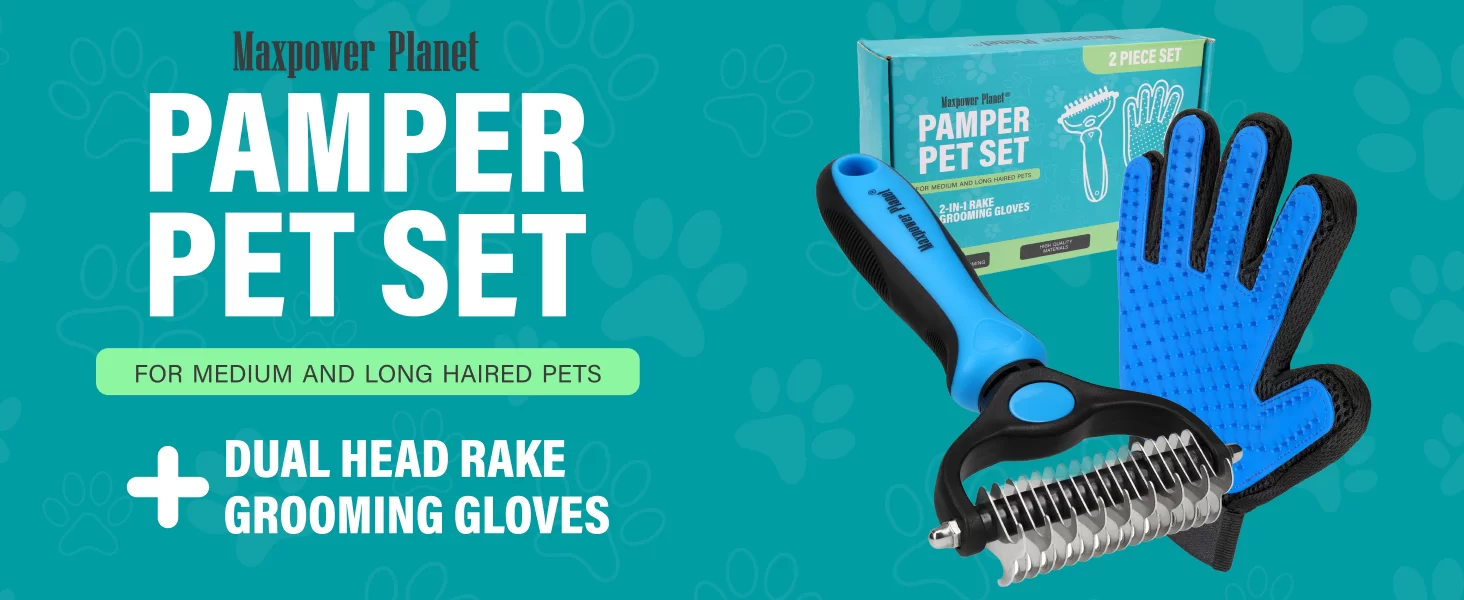 Herramientas perfectas para el aseo de mascotas: nuestro juego de peines para el aseo de perros incluye un rastrillo para eliminar el pelo suelto de perros y guantes de aseo para mascotas; es la solución perfecta para las necesidades de aseo de tu mascota y ayuda a que tu hogar se mantenga libre de pelo de mascotas. ¡Una herramienta de aseo imprescindible!