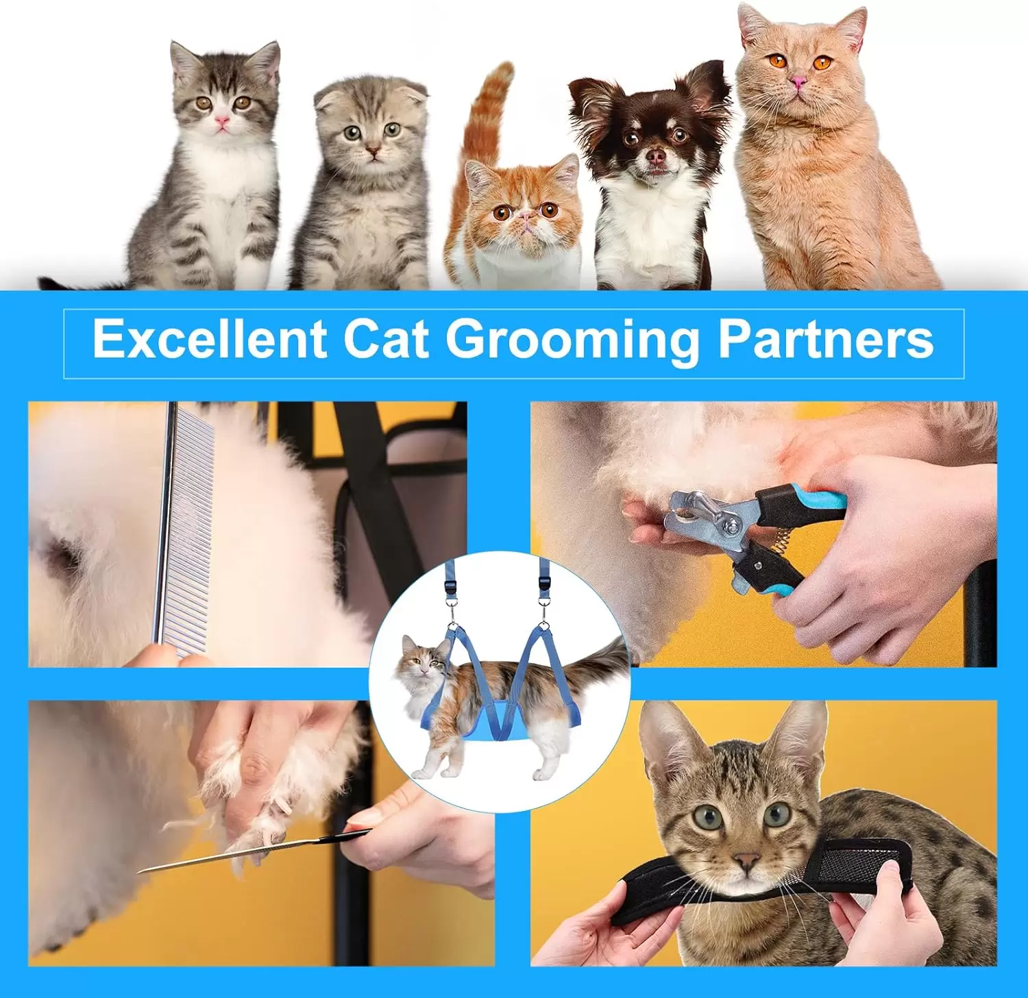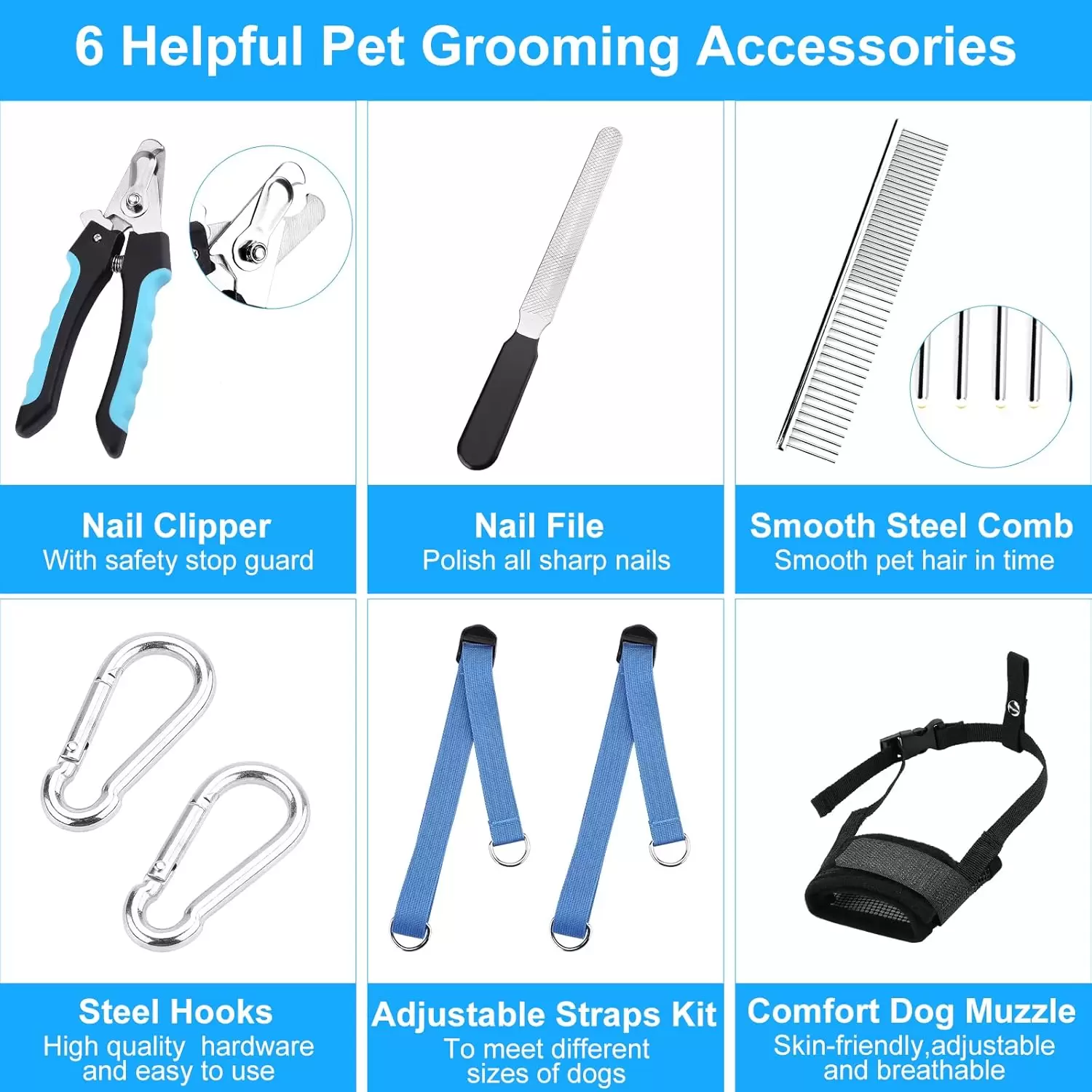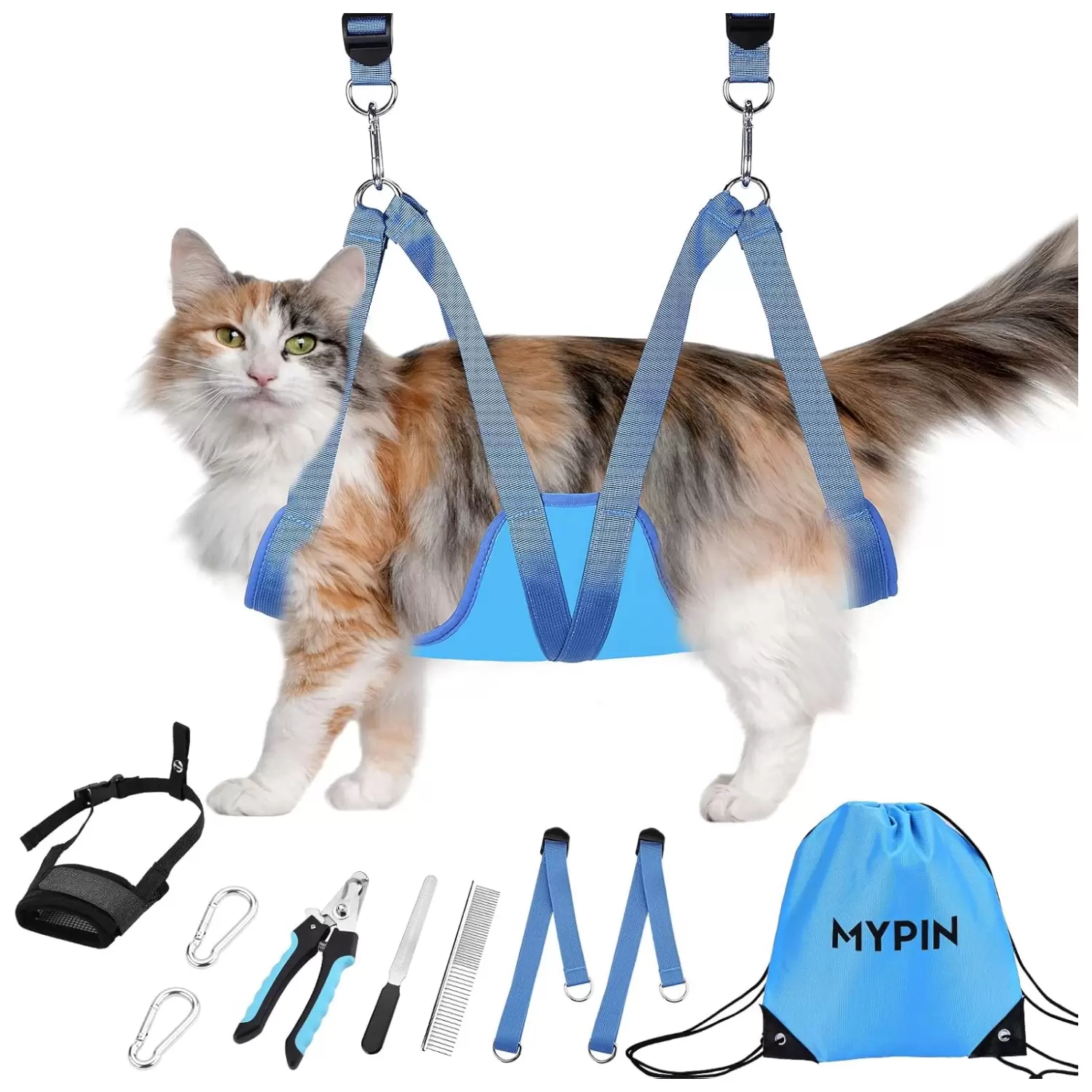 Kit de Aseo para Perros y Gatos: Hamaca de Sujeción Ajustable con Ganchos de Acero
