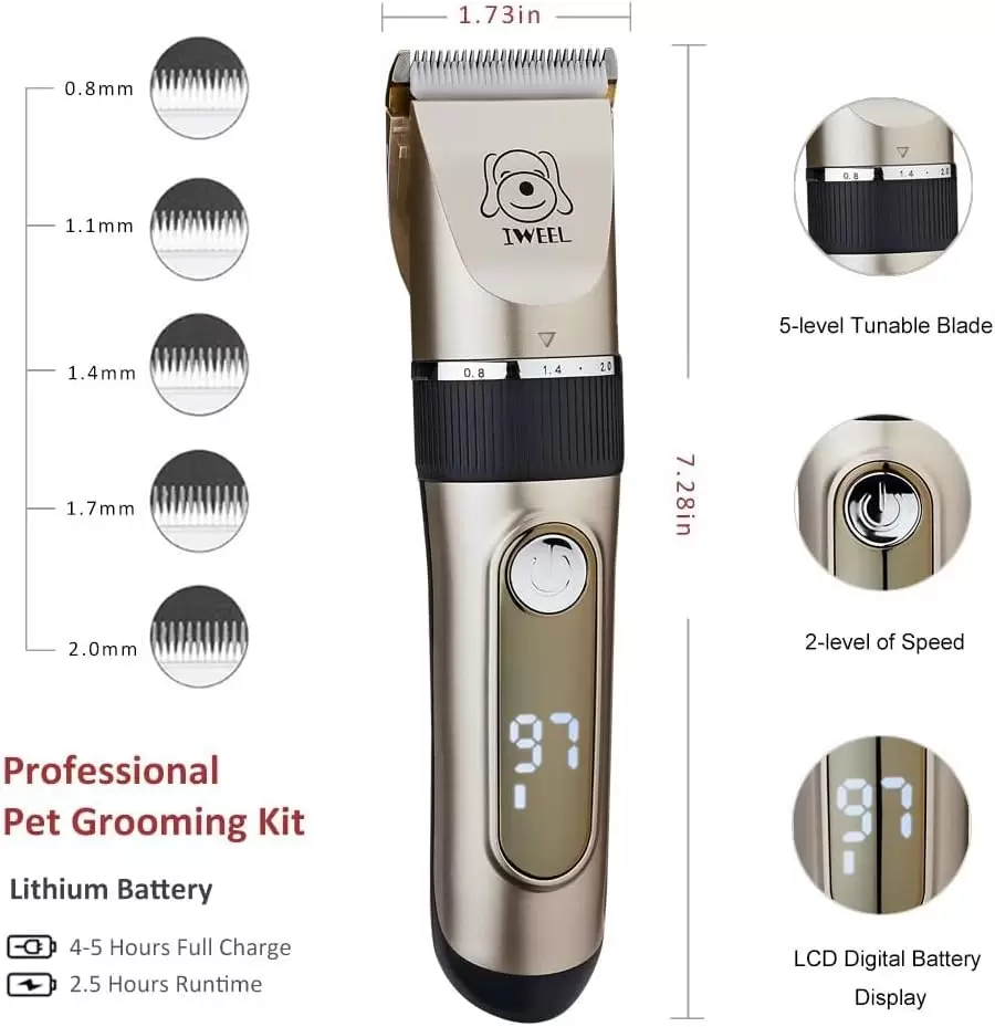 Corte de precisión de 2 velocidades y diseño inalámbrico: no importa si tu perro tiene el pelo liso o corto. Estos cortapelos para perros con los 2 niveles de velocidad y las cuchillas ultra afiladas de acero inoxidable y cerámica van a arreglar su pelaje y crear un resultado impecable. Nuestro recortador de pelo inalámbrico para perros también tiene un diseño ergonómico que permite arreglar incluso las zonas más difíciles de alcanzar.