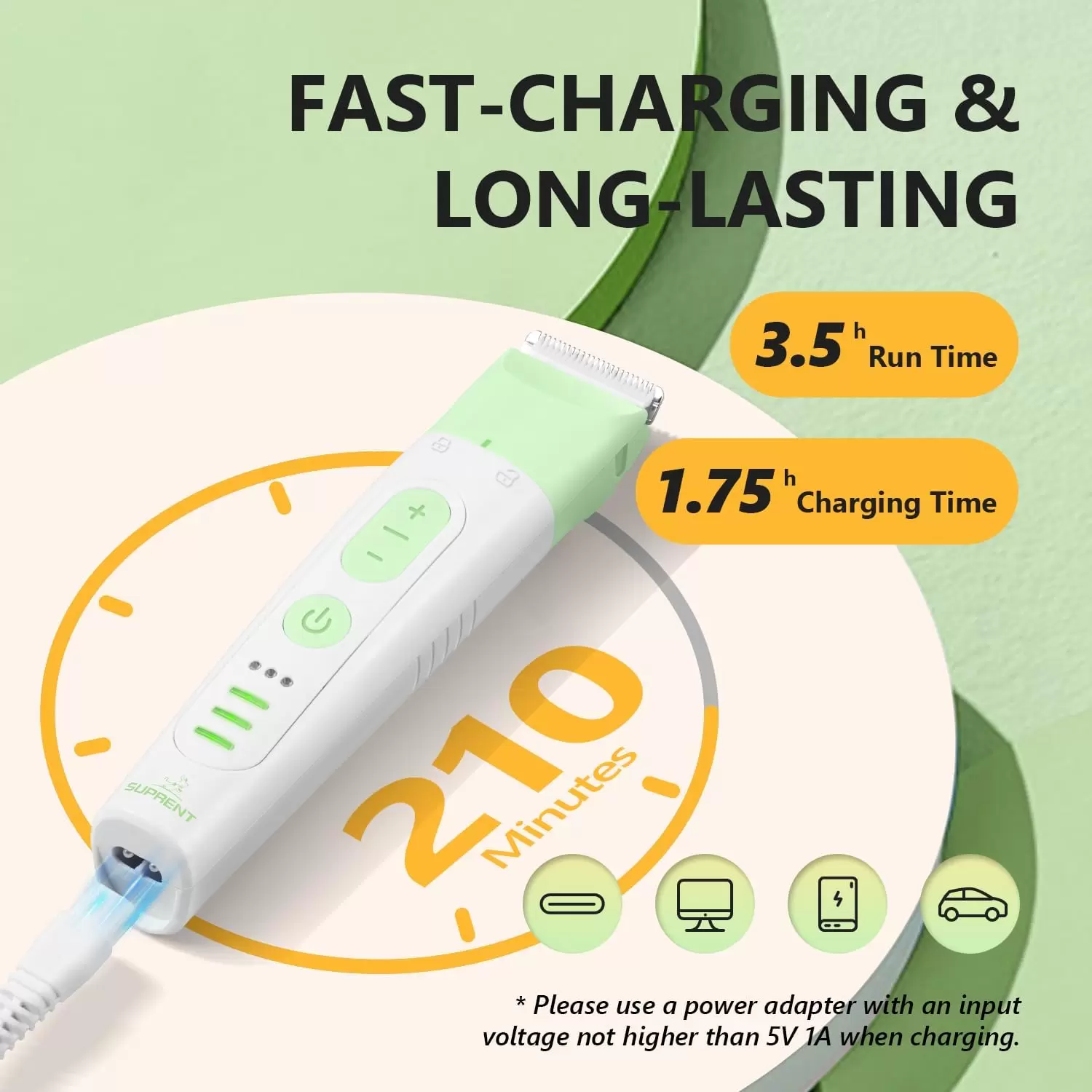 Haz que tu mascota no tenga miedo al recorte: la afeitadora eléctrica para perros de SUPRENT cuenta con un diseño de hoja de cerámica que reduce significativamente el ruido de fricción. Con motores de alta calidad y ejes de motor ultracortos, el ruido de esta cortadora de pelo para gatos se minimiza aún más a solo 50 dB, logrando un equilibrio perfecto entre potencia y bajo ruido, asegurando una experiencia de aseo de bajo ruido para tus perros y gatos.