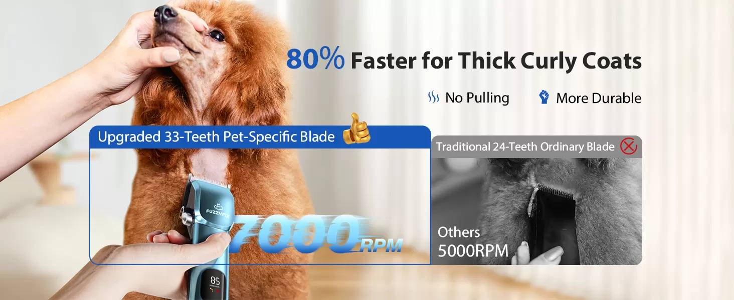 Cuchillas seguras y duraderas: las cuchillas mejoradas de 33 dientes específicas para mascotas ofrecen una nitidez y durabilidad excepcionales, proporcionando un rendimiento de aseo suave, seguro y eficiente. La hoja desmontable hace que sea fácil de limpiar y mantener.