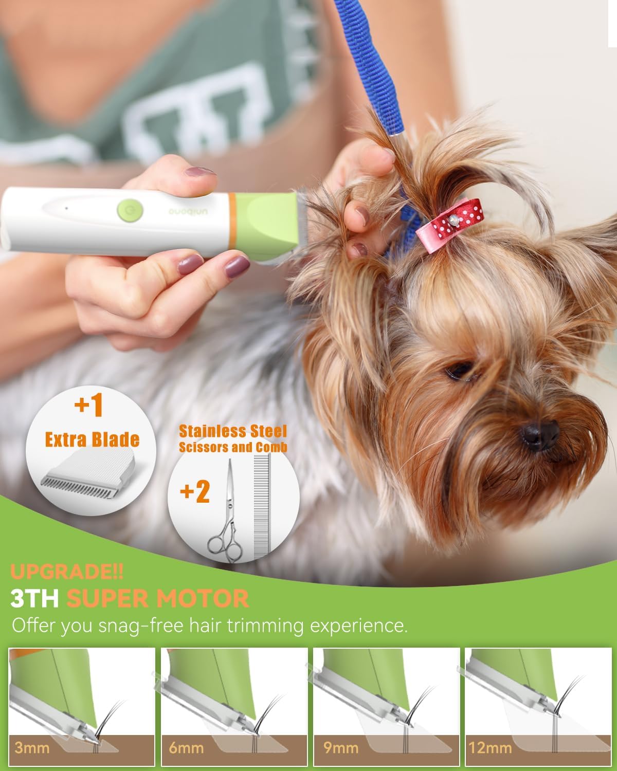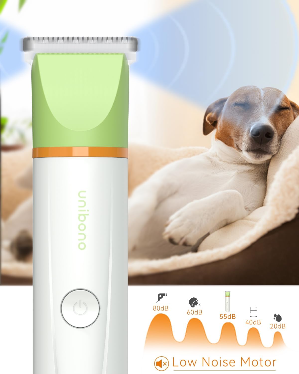 Gran kit de aseo doméstico para mascotas: el ruido es de aproximadamente 55 dp cuando la cortadora de pelo para mascotas funciona, logró el equilibrio perfecto entre un corte potente y un funcionamiento de bajo ruido. Ya sea recortando el cabello en las garras o las cuencas de los ojos, todo se hace fácilmente. Se puede utilizar sin cable y con cable, y el práctico diseño de carga USB te permite recortar a tu mascota en cualquier momento y en cualquier lugar, haciendo que tus mascotas adoren el aseo