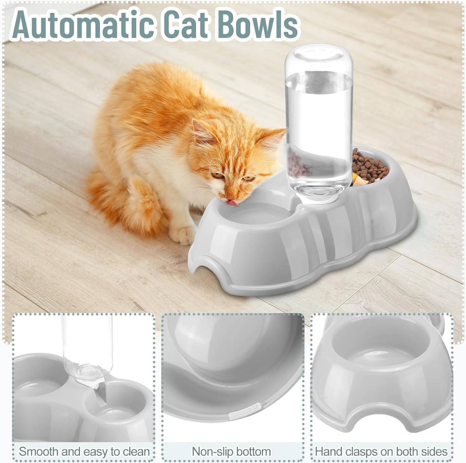 Bandeja de doble tazón para gatos: la bandeja de tazón doble 2 en 1 está hecha de material de polipropileno grueso, grueso y resistente, la superficie del tazón es lisa y no tiene rebabas, por lo que no rayará la boca del gato; la botella de agua automática es de aproximadamente 16.9 fl oz/16.91 oz