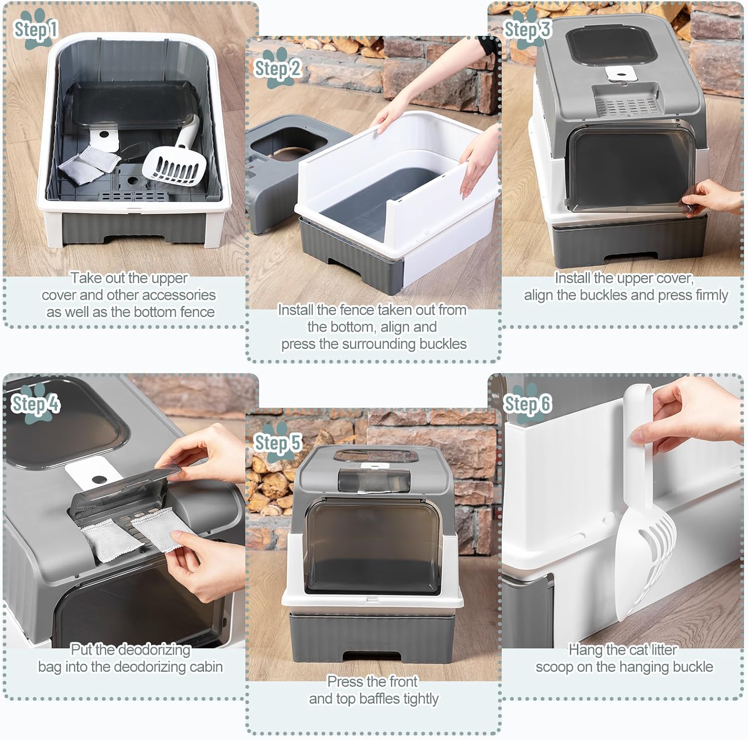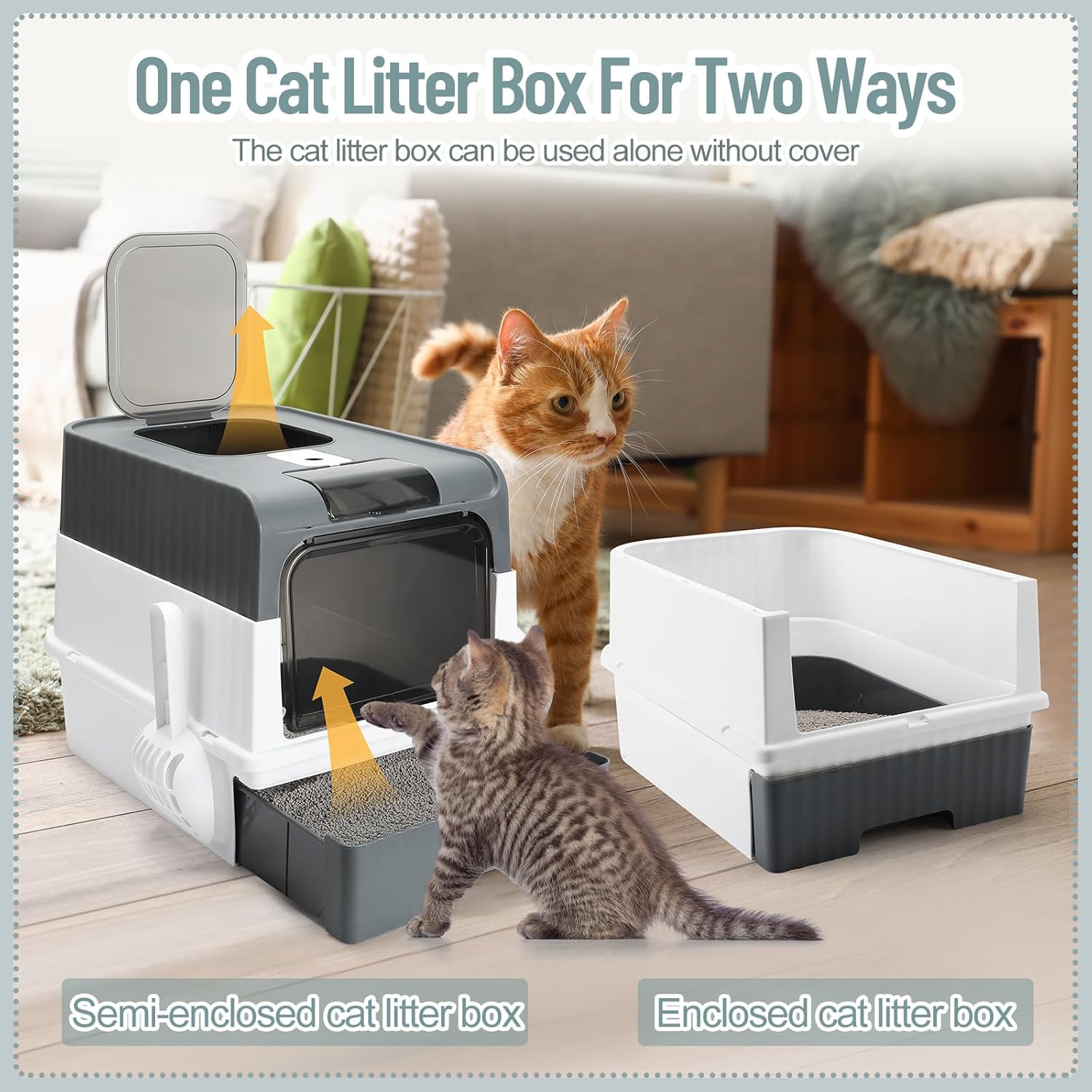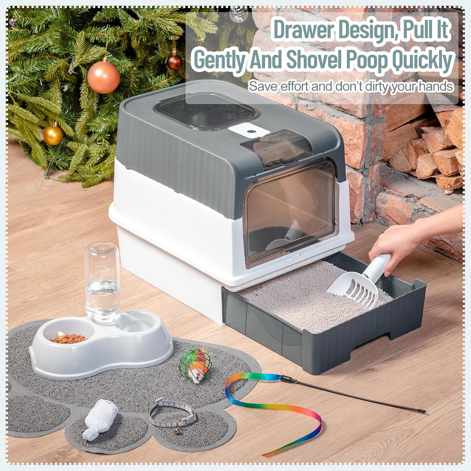Bandeja de arena para cajones: tamaño de la caja de arena para gatitos de aproximadamente 18.9 x 14.17 x 13.78 pulgadas / 18.9 x 14.2 x 13.8 in; este tamaño pequeño la hace ideal para gatos pequeños que pesan hasta 3 libras, está hecha de material plástico PP, seguro, no irritante, diseño cerrado que puede evitar eficazmente que la arena para gatos salpique fuera de la caja mientras el gato está jugando. minimizar el desorden, y También puede ser un buen bloque dentro del olor