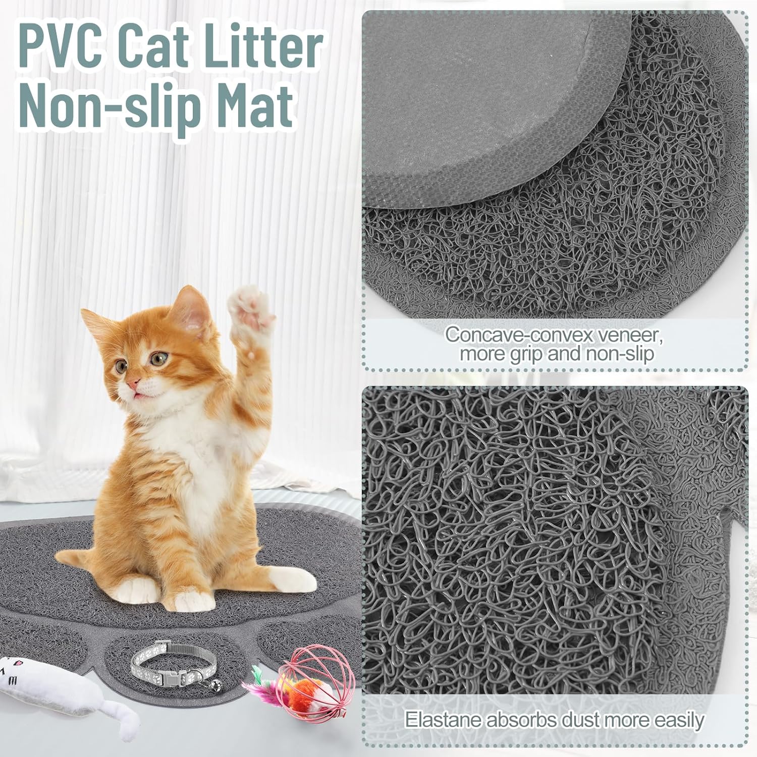 Kit de iniciación para gatitos: el paquete incluye 1 caja de arena desmontable para gatitos, 1 cuchara, 1 alfombrilla de arena gris claro (aproximadamente 23.6 x 17.7 pulgadas/23.6 x 17.7 in), 1 cuenco para gatos, 2 juguetes para gatos, 1 palo de arena para gatos y 1 collar ajustable para gatos con una campana (aproximadamente 7.5 pulgadas/19.05 pulgadas) cm a 12.0 pulgadas. 6 pulgadas/12.6 in), bueno para que los nuevos dueños de gatos den la bienvenida a sus nuevos gatos en casa