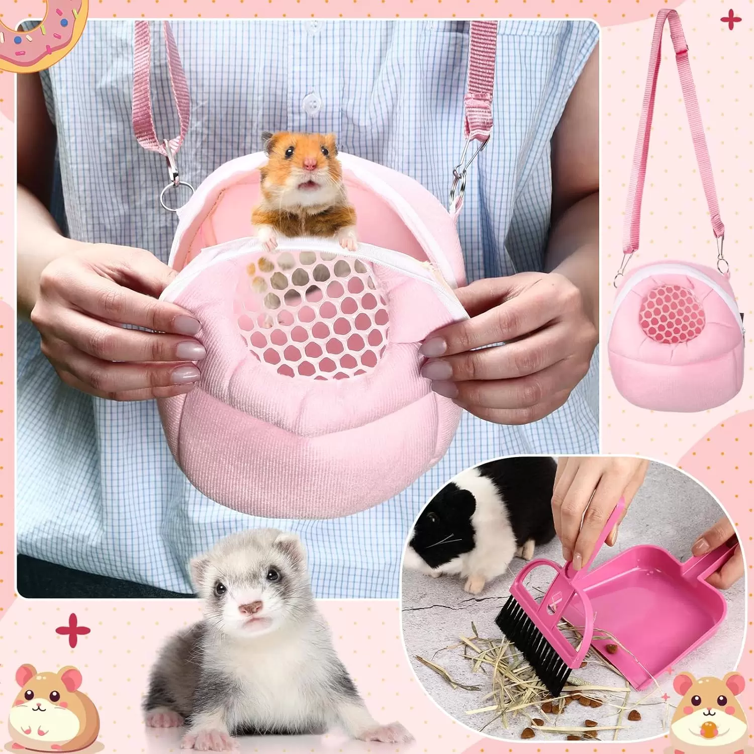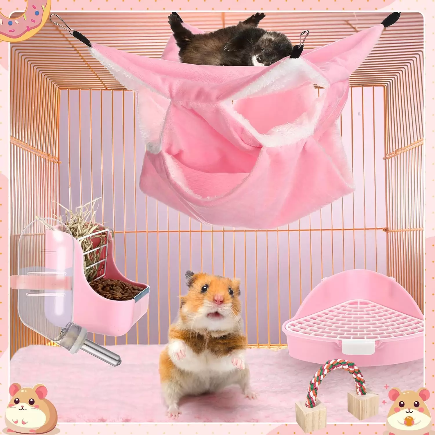 Combinación rosa uniforme: mantas, esteras, toallas, inodoros pequeños, cuencos de alimentación, juegos de limpieza y otros productos son principalmente rosados; el color uniforme hace que la imagen de crianza de mascotas sea armoniosa y decora tu jaula de hámster