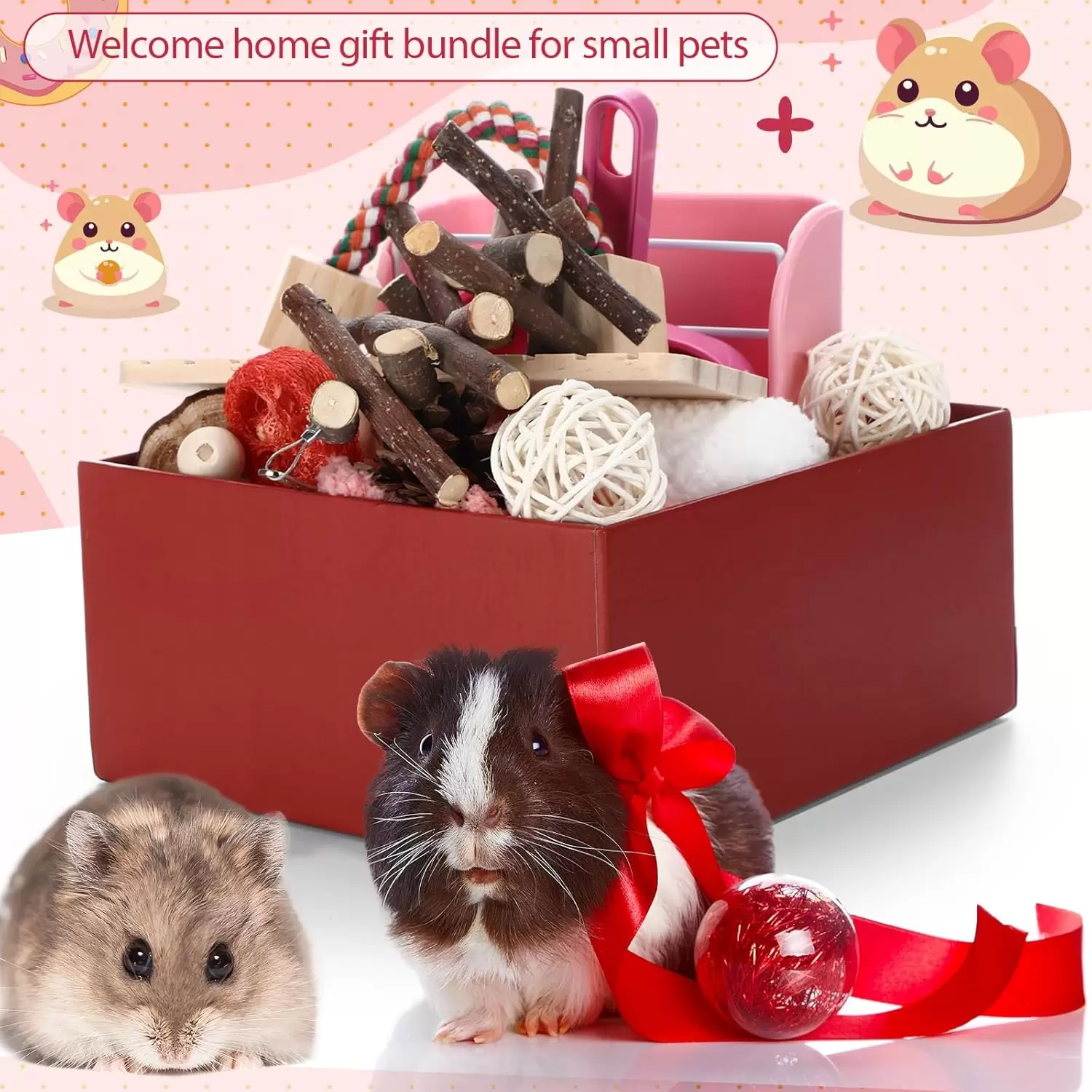 Kit de Inicio 20 Accesorios para Hámster | Inodoro, Hamaca, Limpieza y 10 Juguetes para Roedores