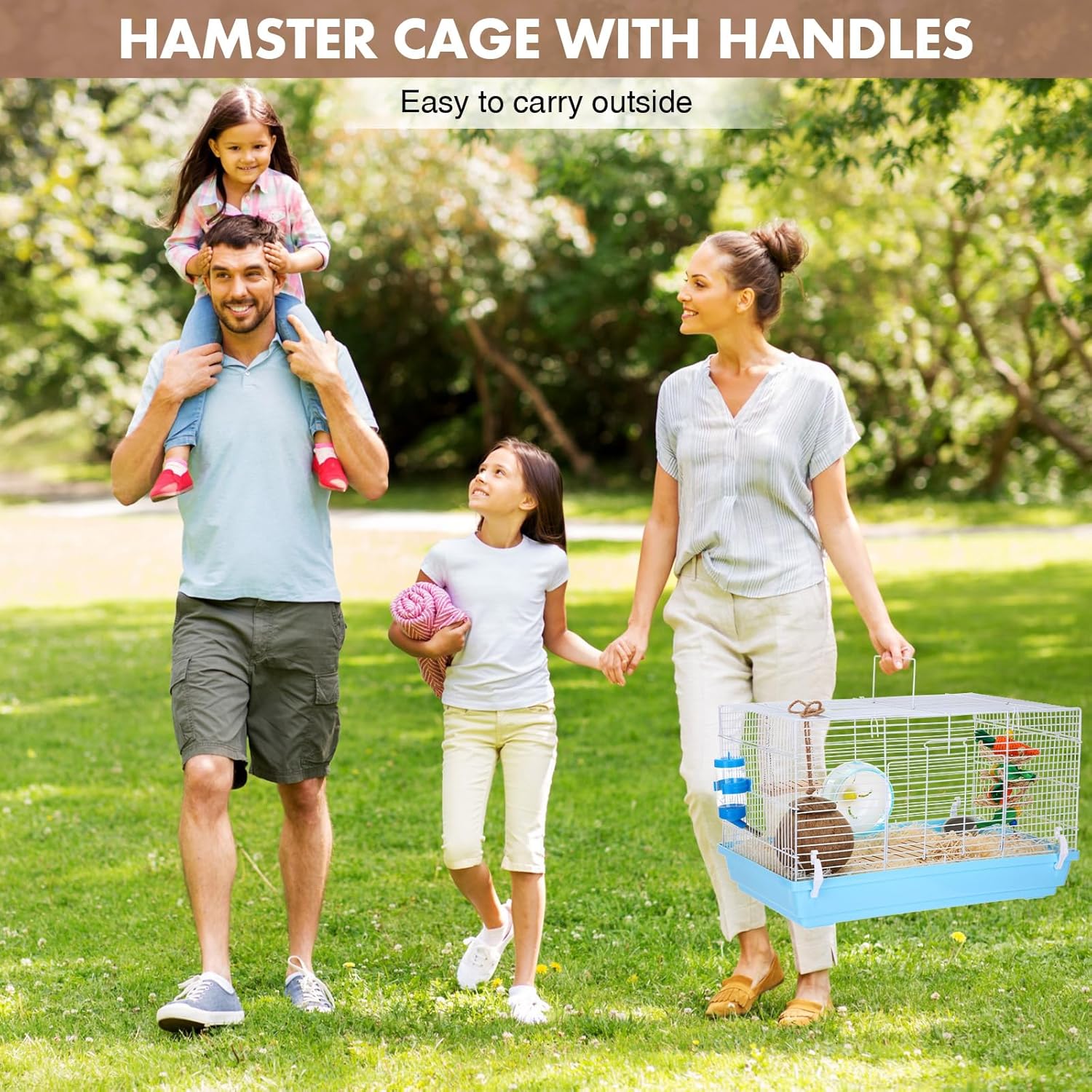 Amplio espacio vital: la jaula para hámster mide 18.5 x 11.81 x 11.81 pulgadas, el escondite de conejillo de indias y los accesorios de la jaula de hámster se pueden organizar fácilmente, simplemente levanta la puerta delantera para entrar en el hámster y limpiar los accesorios o rellenar comida/agua