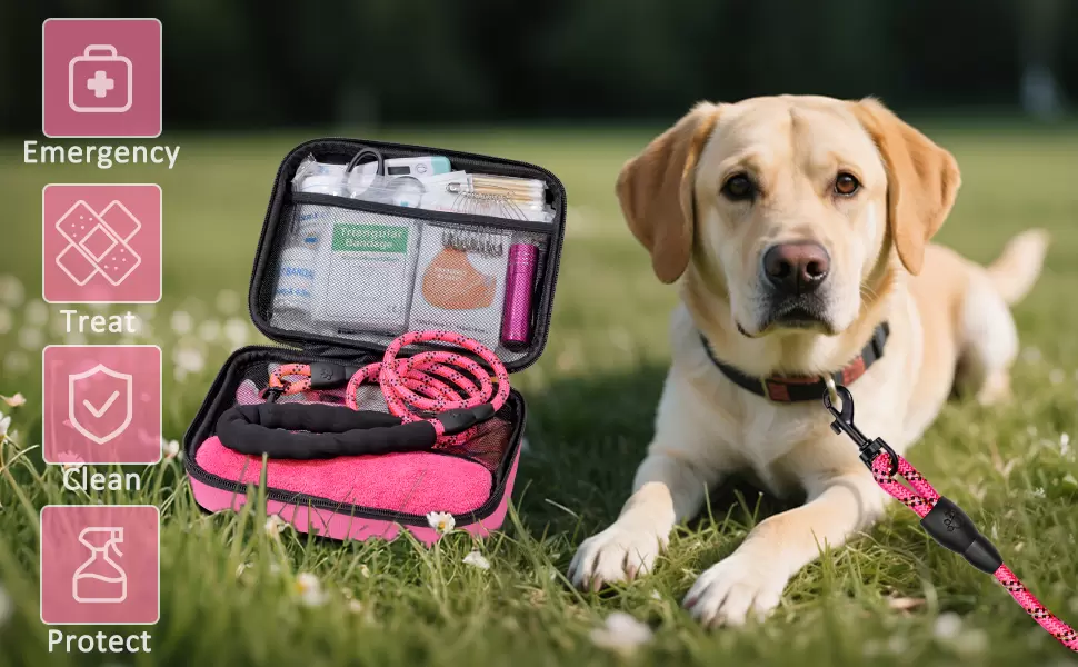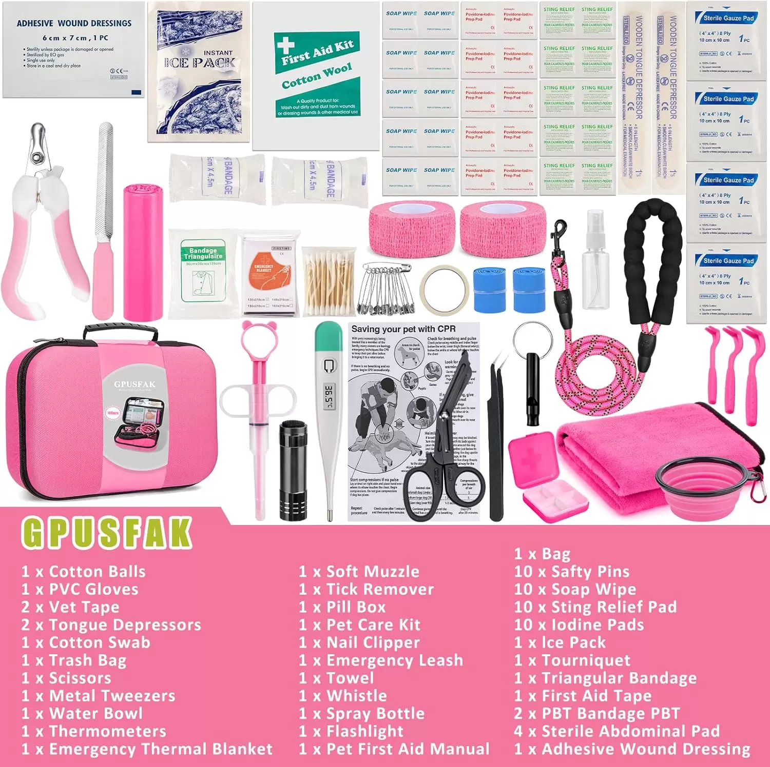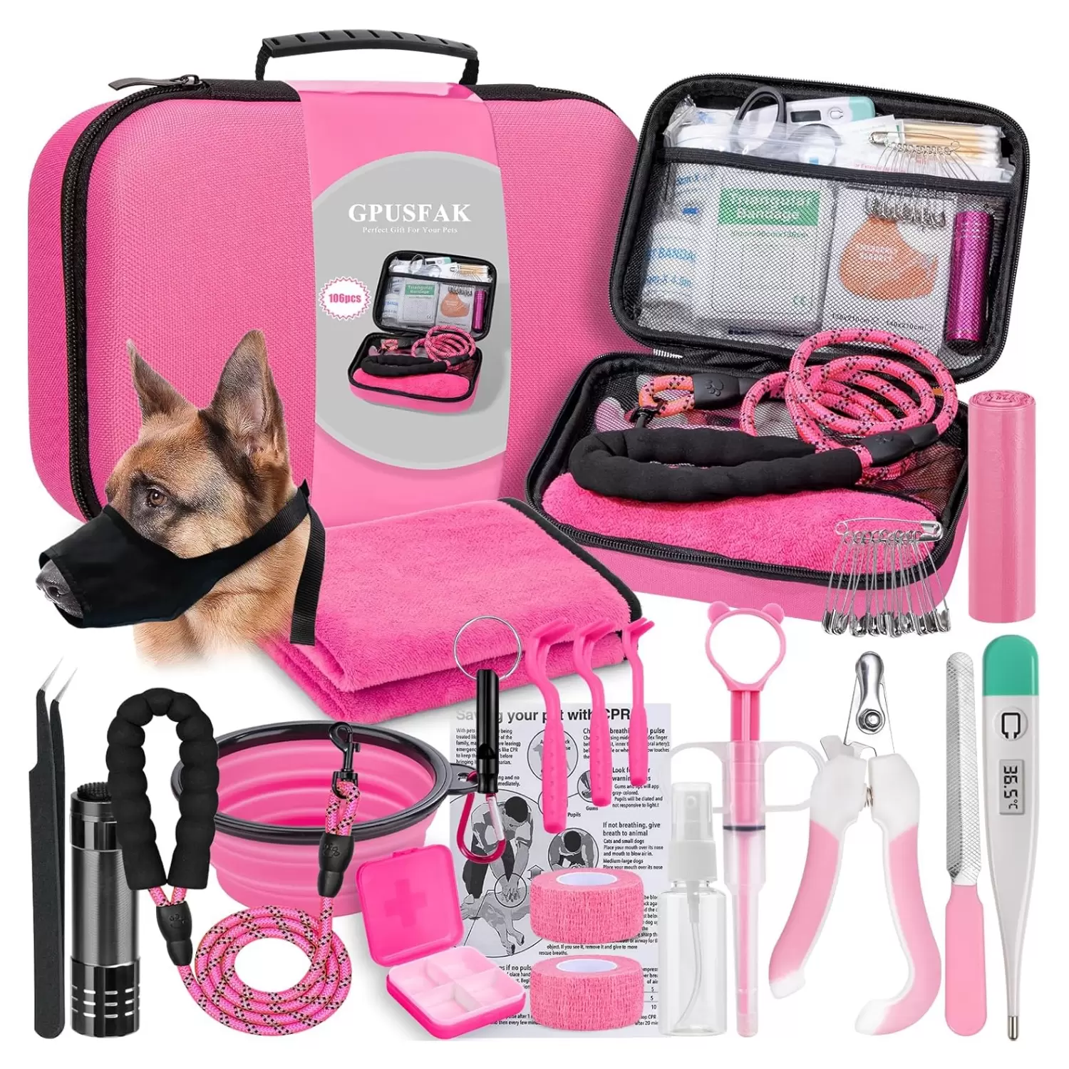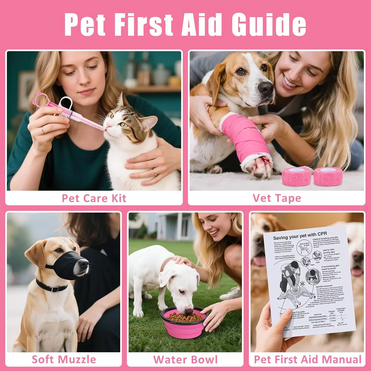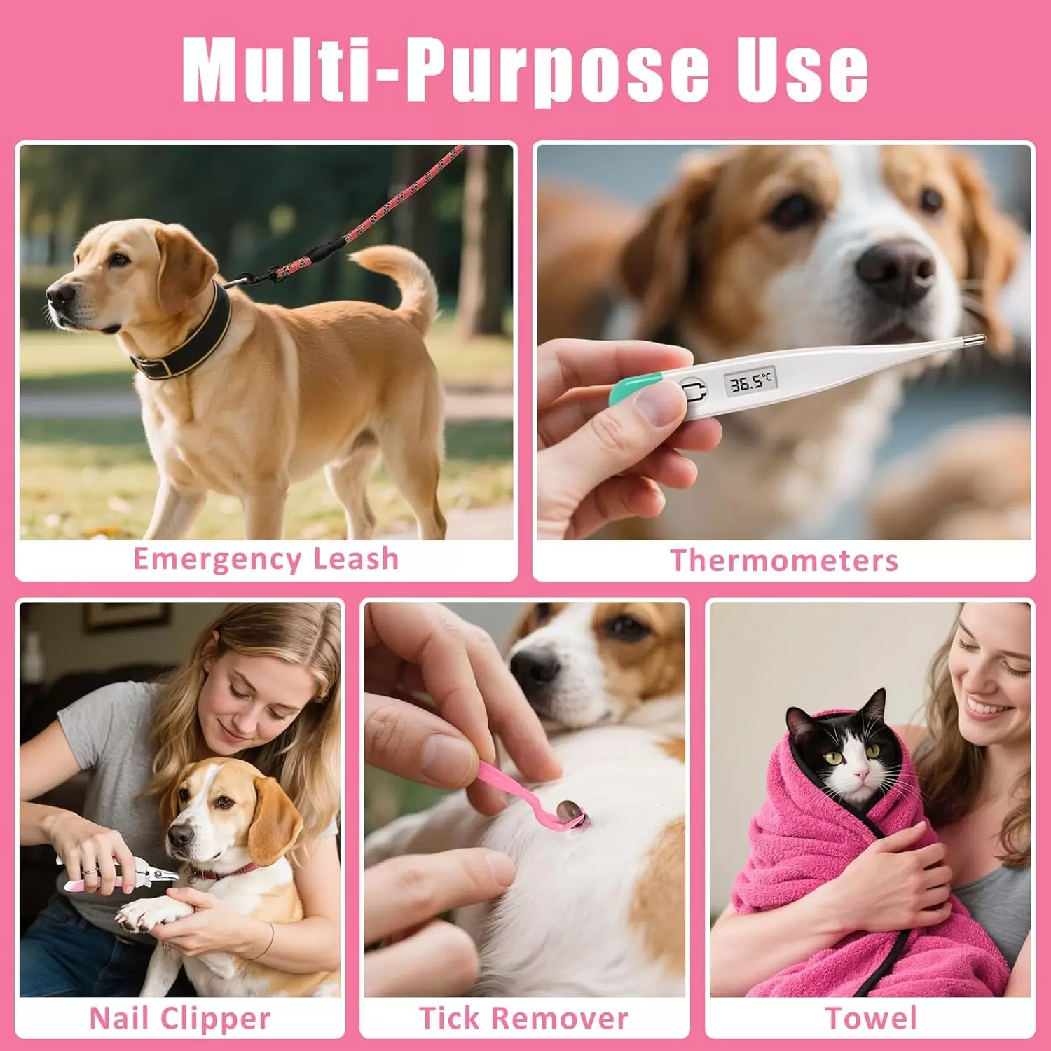 Kit de Primeros Auxilios de 95 Piezas para Perros | Botiquín de Viaje y Camping (Color Rosa)