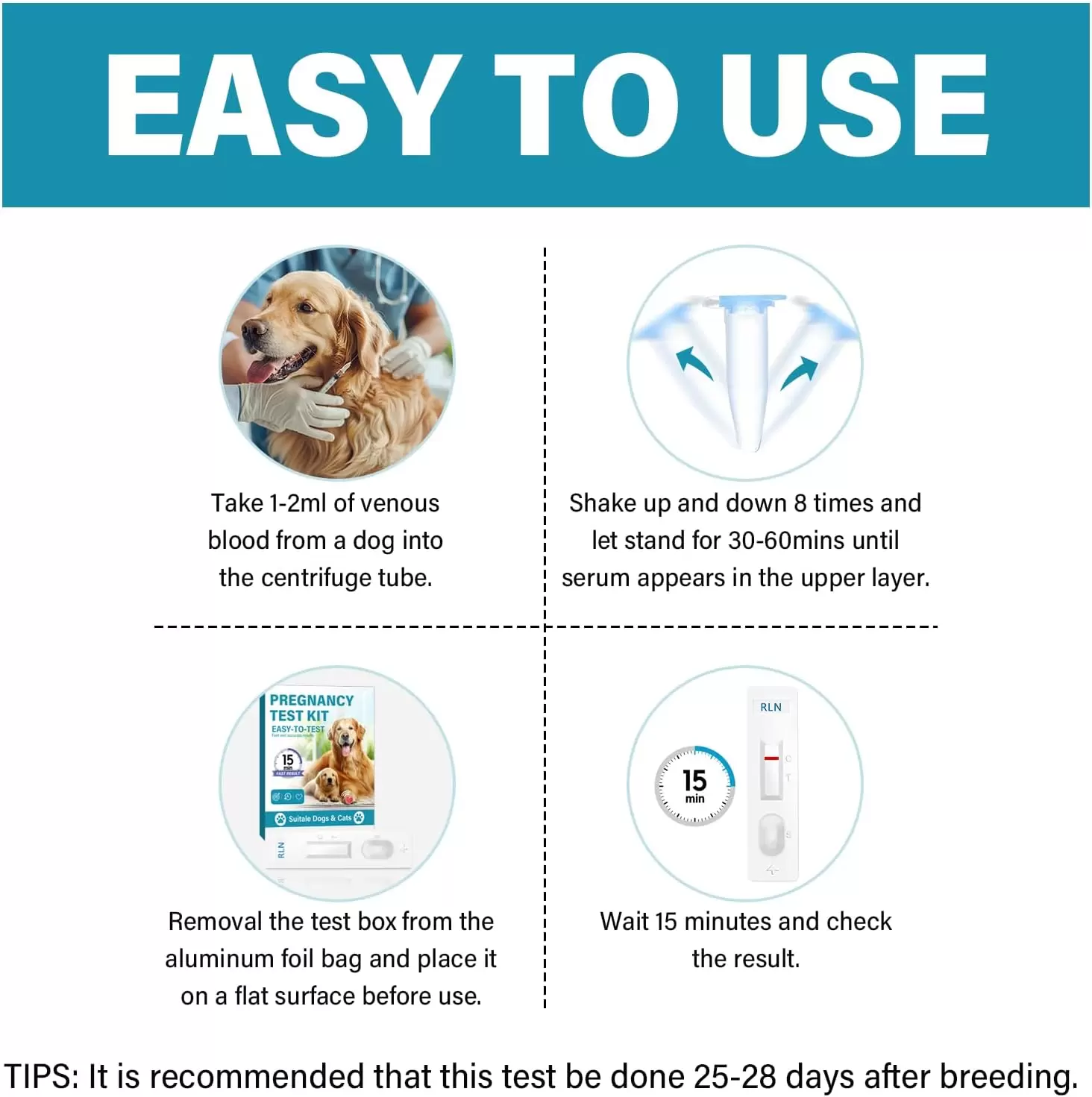 Rápido y preciso: nuestro kit de prueba de embarazo para perros utiliza tiras de prueba médicas especializadas para pruebas de embarazo de mascotas, con resultados en 15 minutos, puede probar rápidamente y proporcionar resultados precisos.
