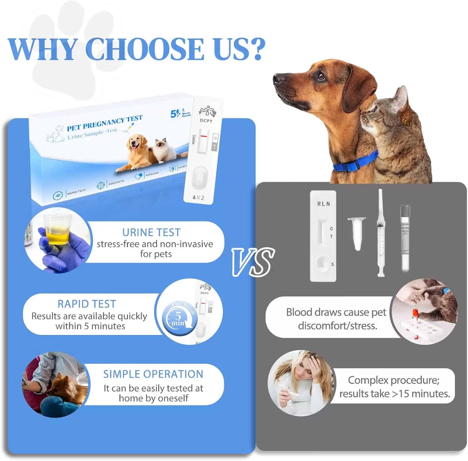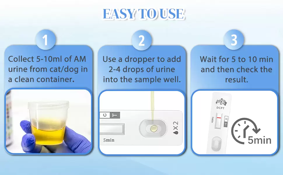 Rápido y fácil de usar: con el kit de prueba de embarazo para perros y gatos, obtener resultados es sencillo. Simplemente sumerja la tira reactiva en la muestra de orina y espere de 5 a 10 minutos para obtener resultados claros y fáciles de leer, sin procedimientos complicados.