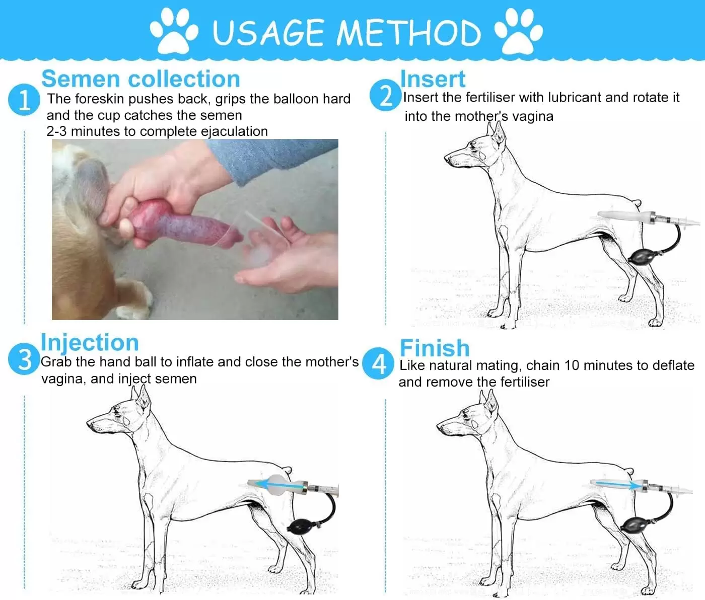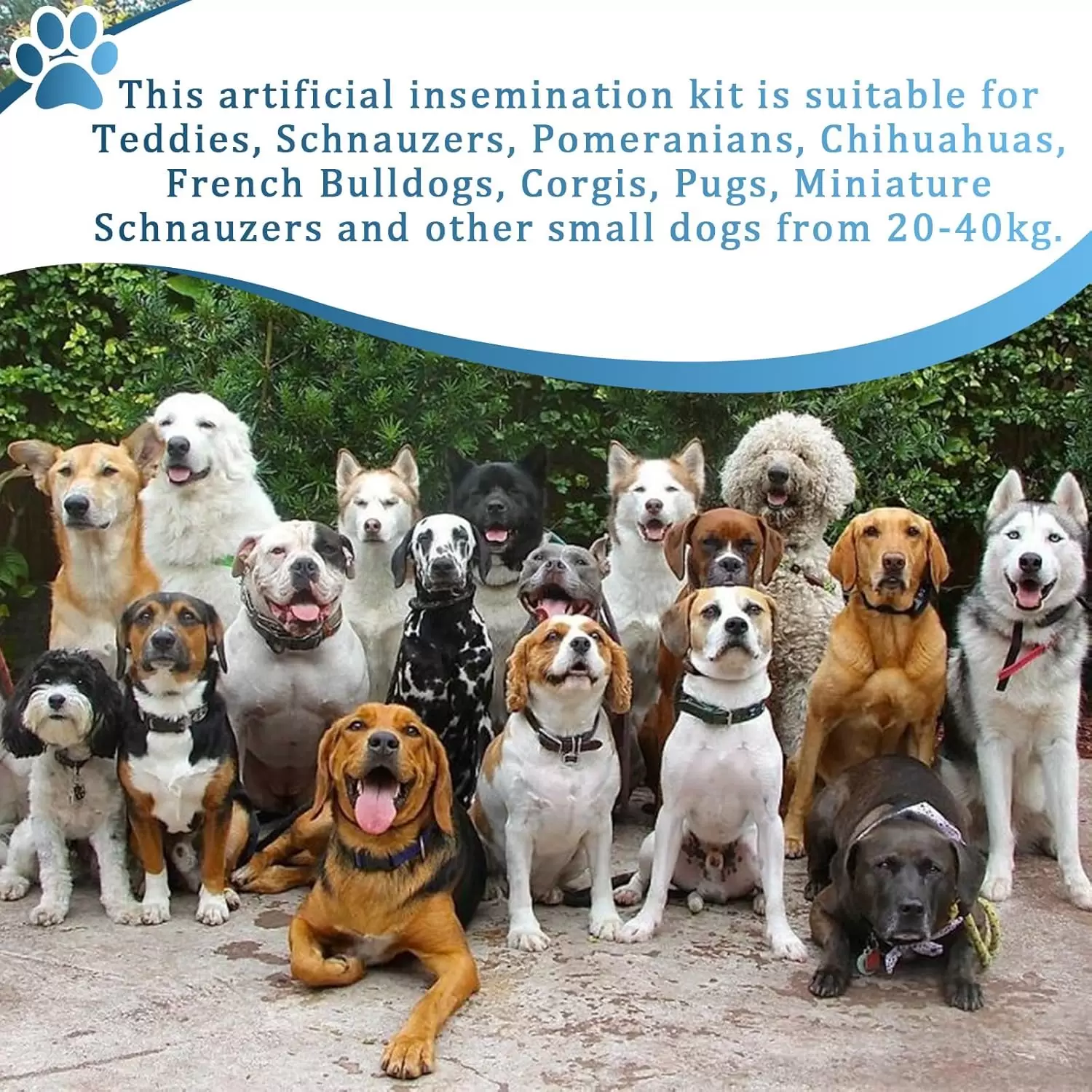 Función: este kit de inseminación artificial es para perros de 20 a 88.2 lbs. Adecuado para ganado británico, ganado francés, cría de animales de frontera, Su Mu, matón, pastor alemán, Golden Retriever, Samoyedo, perro nativo y otros perros de tamaño medio. Funcionamiento simple, seguro y no tóxico. Alta tasa de embarazo