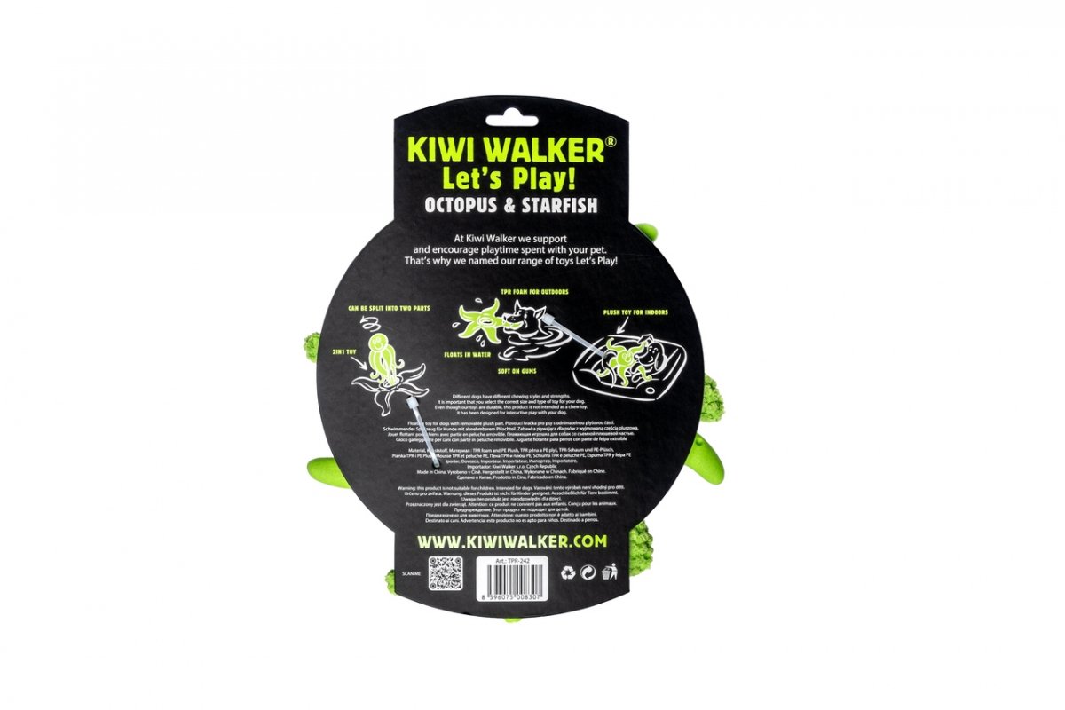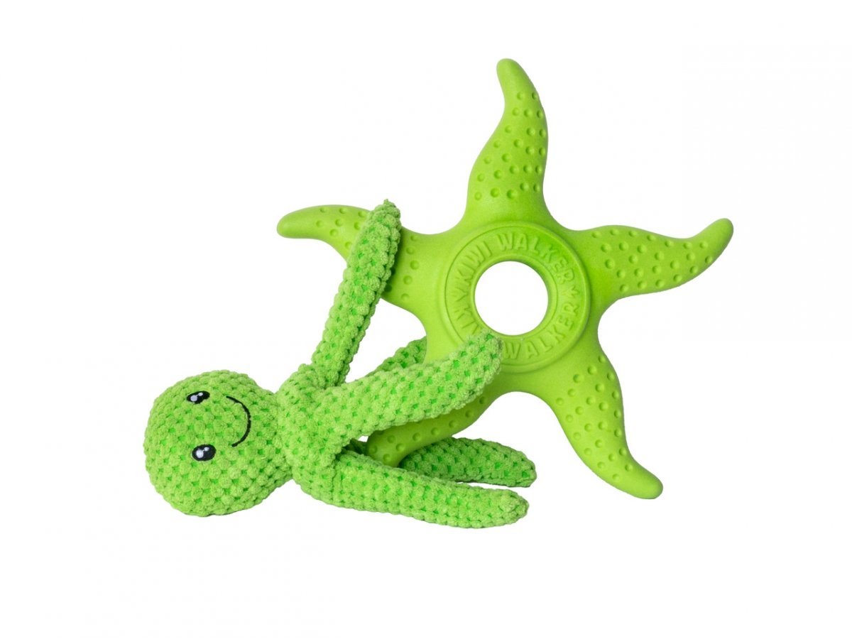 En Kiwi Walker, creemos en el poder de jugar con tu amigo peludo. Es por eso que hemos creado un juguete único que puede transformarse en una linda estrella de mar y un pulpo, o combinados, pueden formar un dúo increíble.